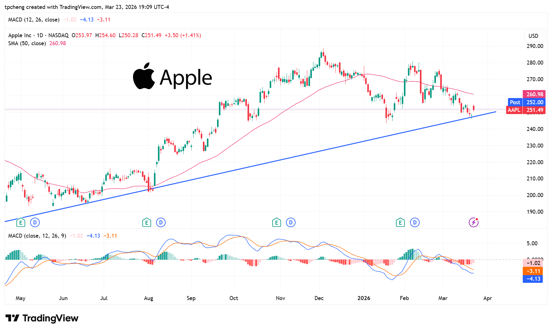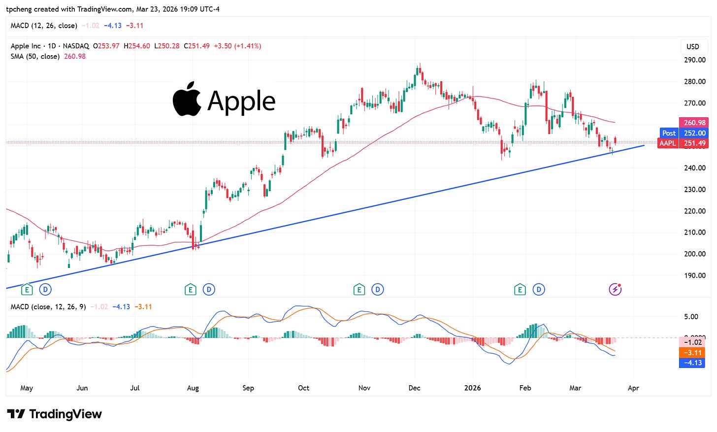 股價表現:受利多消息激勵,Apple 週一股價上漲 1.41%,優於大盤(S&P 500 上漲 1.1%)。
