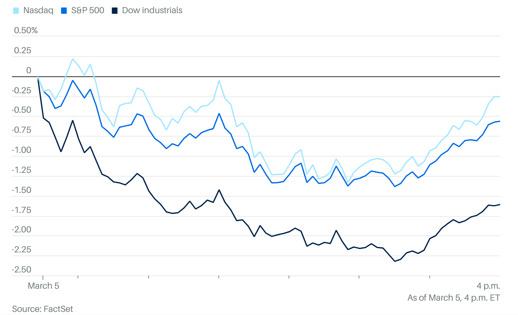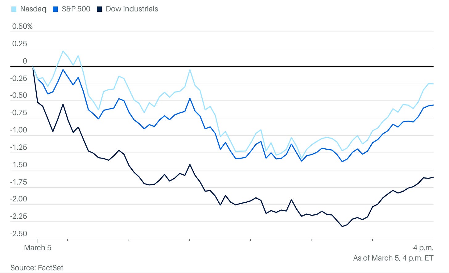 藍籌股普遍回調:包括高盛 (GS)、開拓重工 (CAT) 及 Walmart (WMT) 等傳統權重股跌幅均超過 3%。