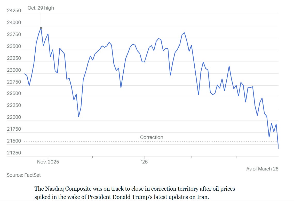2026 年 3 月 26 日是市場重新定價的一天。原本對和平的期待轉變為對長期衝突與通膨的焦慮。科技股雖然擁有 AI 願景,但法律監管、高額資本支出以及利率壓力,正讓這群領頭羊面臨嚴峻的價值重估 。短期內,投資者應密切關注本週五川普設定的和平談判截止日期,這將決定能源市場與整體股市的下一步走勢 。