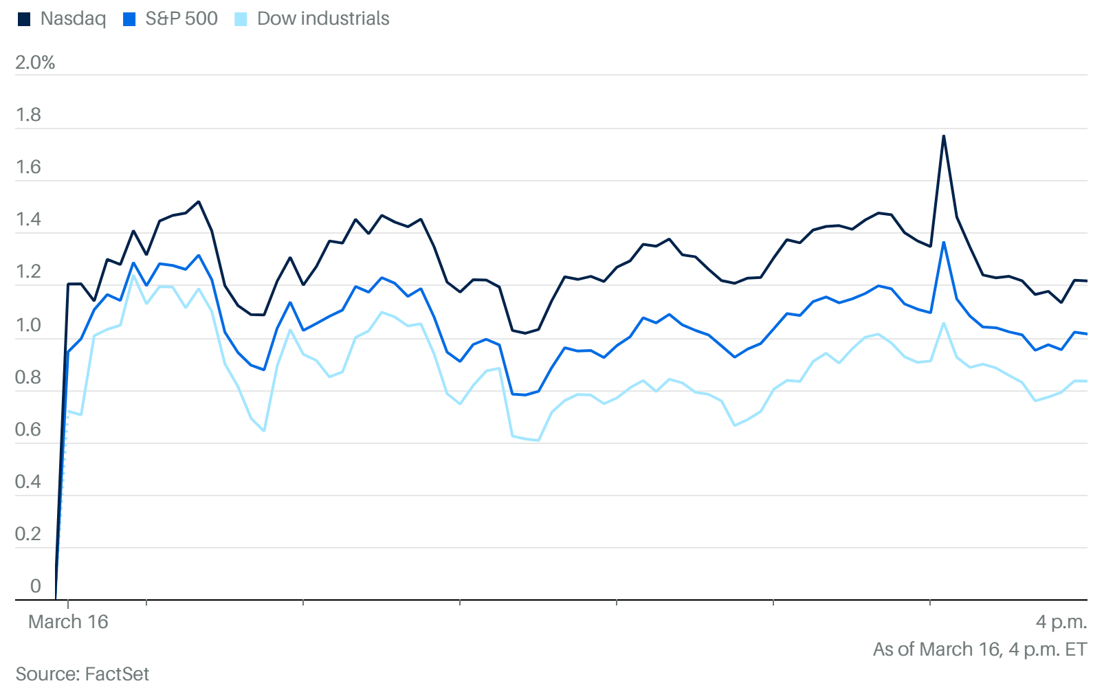 市場表現:S&P 500 指數上漲 1% ;Nasdaq 指數上漲 1.2% ;道瓊工業指數則上漲 388 點(約 0.8%)。