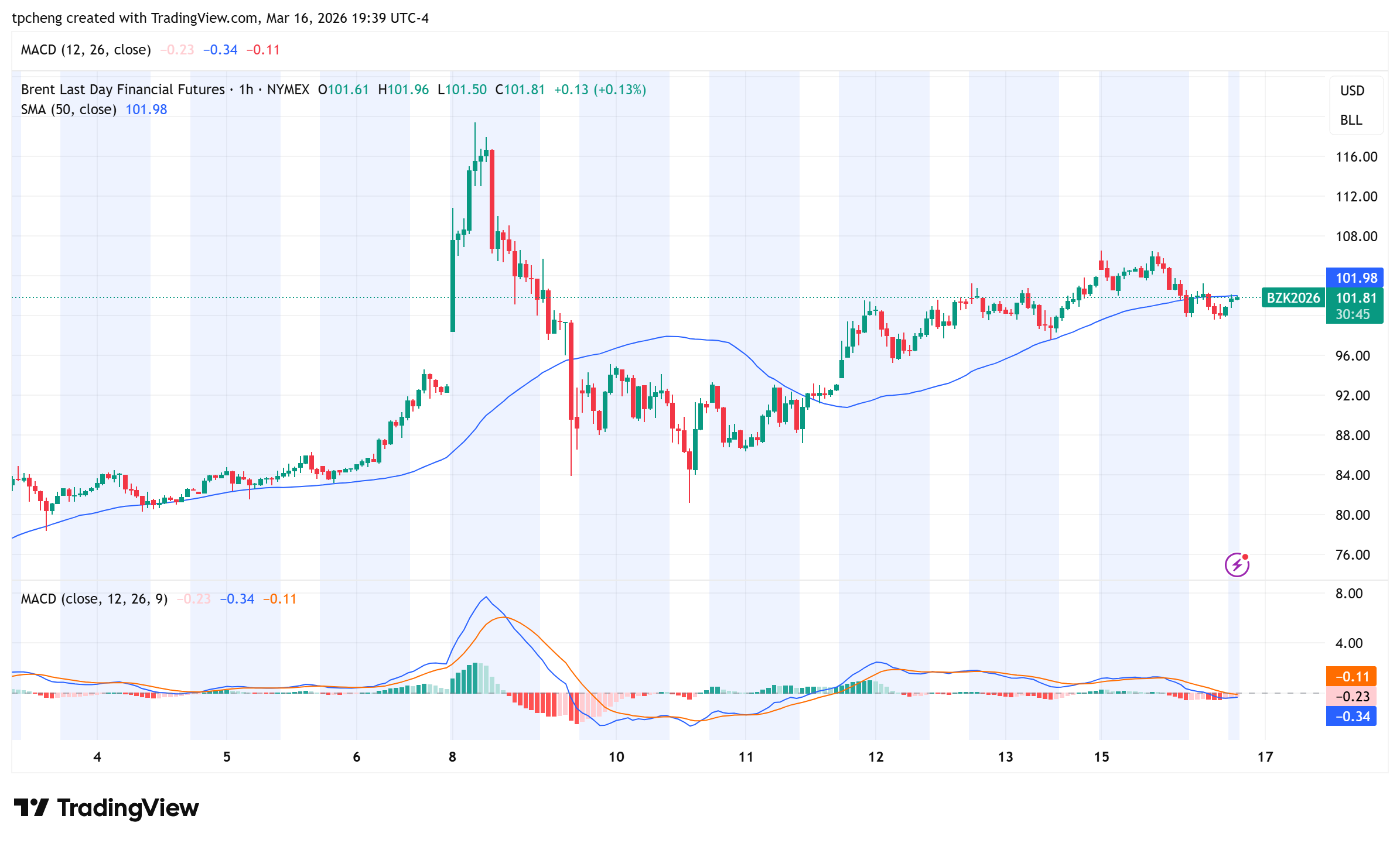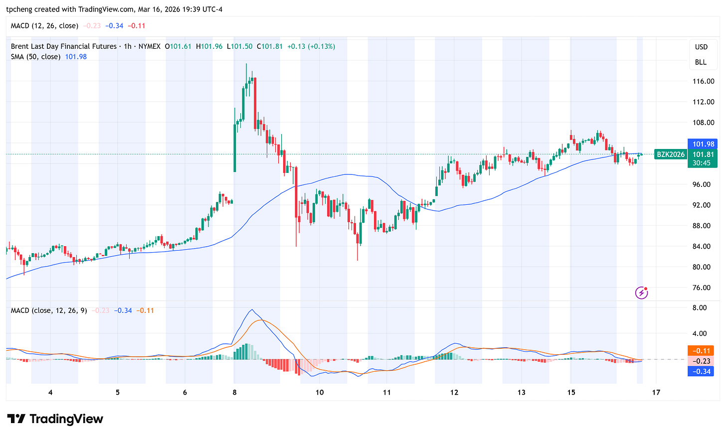 油價動態:西德州原油 (WTI) 期貨下跌近 5%,收在每桶 93.50 美元 ;布蘭特原油則回落至每桶 100 美元左右 。儘管今日回檔,但自 2 月底美伊開戰以來,WTI 油價已累計上漲約 40% 。