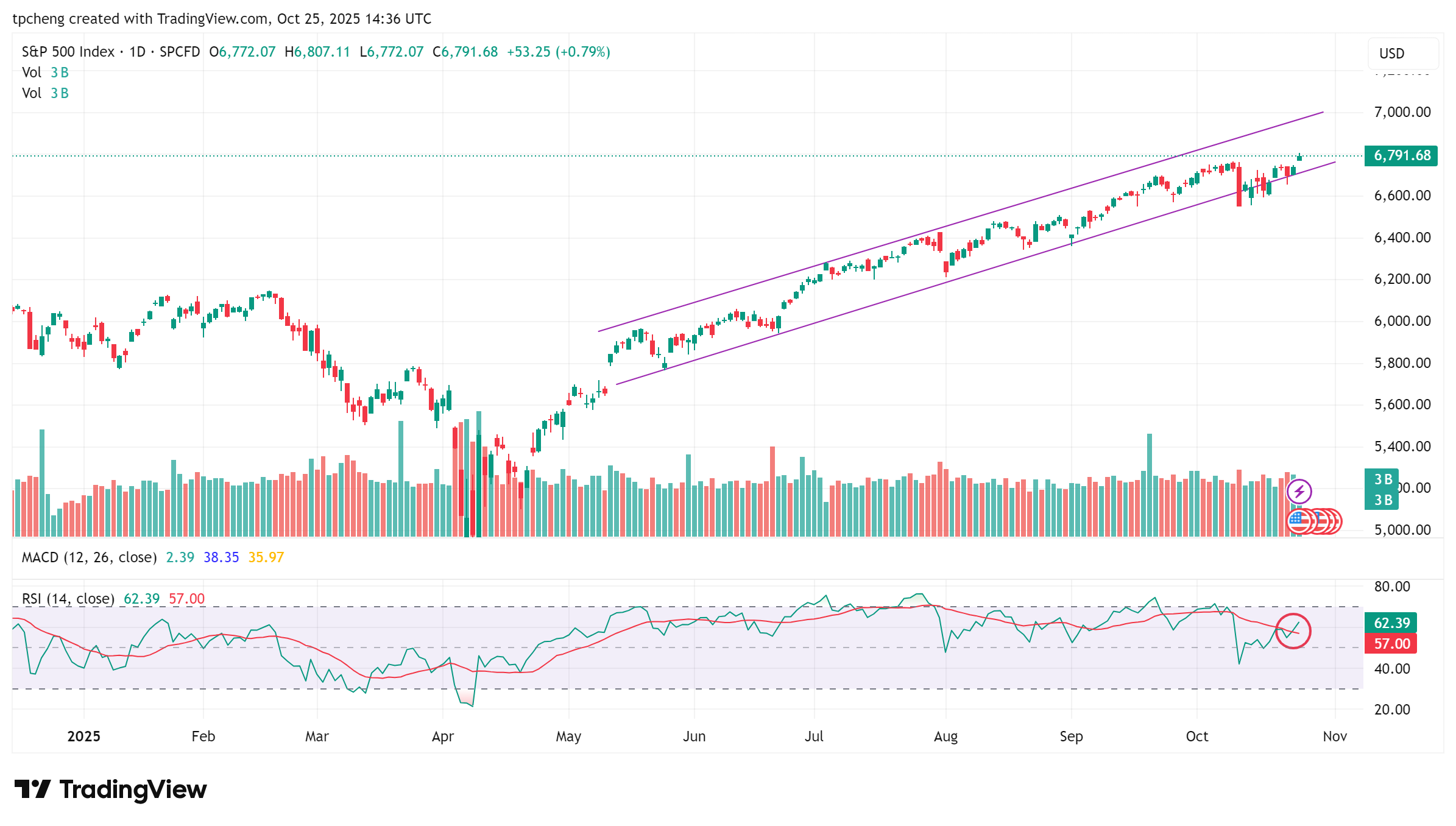 三大指數全線上揚並創歷史新高:S&P500突破6,800點整數關口。
