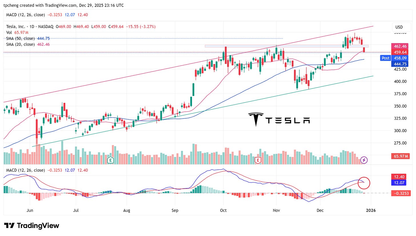 Tesla: 股價下跌,受 Cybertruck 訂單縮減影響,但市場定價核心已轉向 AI 和機器人敘事 。