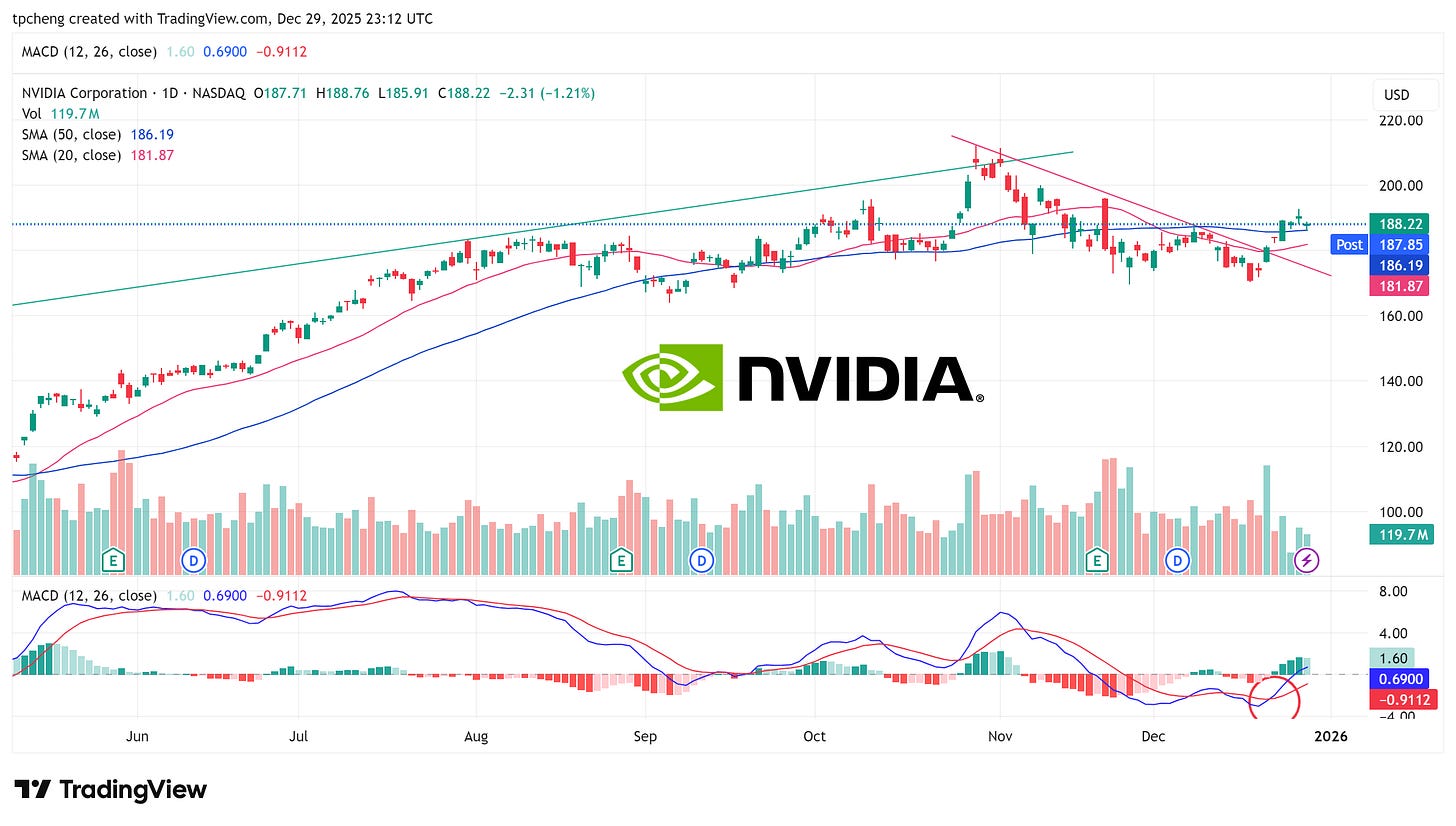 Nvidia: 根據 9 月協議購入 Intel 股份,股價若能穩守 50 日均線將是新買點 。