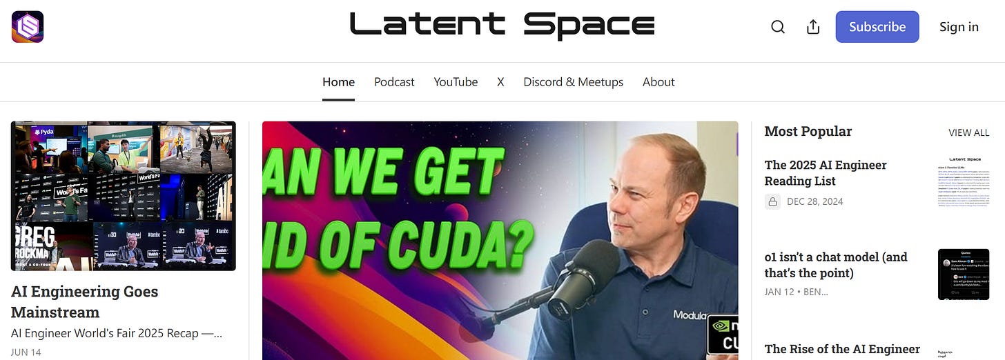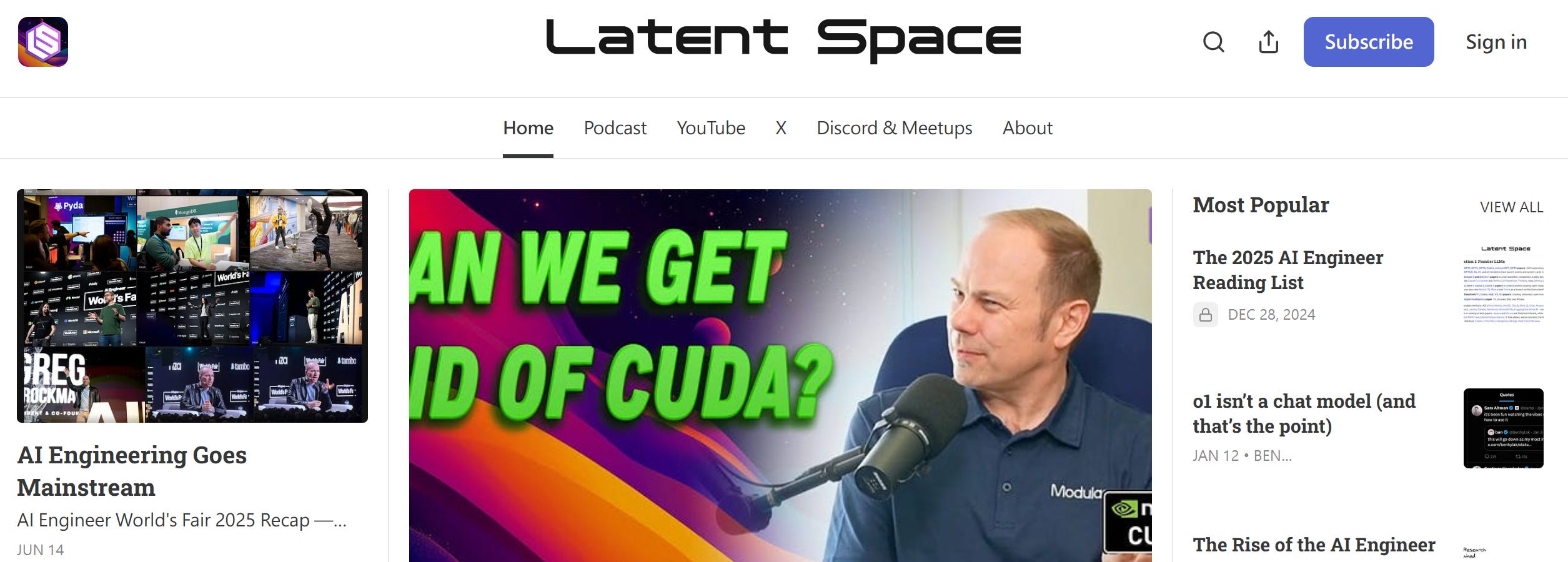 內容相對有點門檻,涵蓋較多關於 AI 的技術架構、基礎設施,以及開源生態的最新趨勢,整體比較偏向技術圈受眾。同時,他們也推出了 podcast,經常邀請近期備受關注的創業者進行深入訪談。