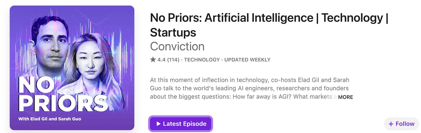 《No Priors》由 Sarah Guo(前 Greylock 合夥人,投資過 Cognition、HeyGen、Mistral 等AI新創)與 Elad Gil 共同主持,兩位主持人在科技與創業圈都有極為深厚的背景。