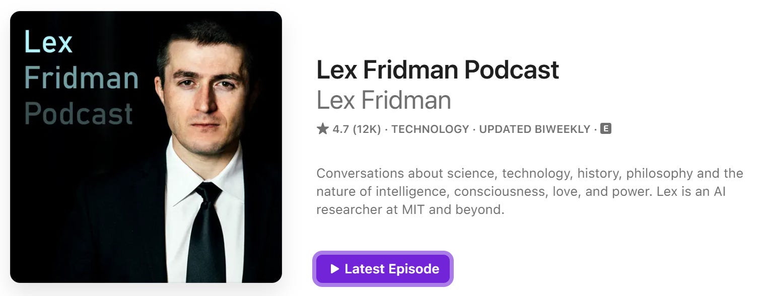 如果你對 AI、科技與創業感興趣,他的節目絕對是必聽之一。每集長達 2 到 3 小時,內容深入,嘉賓陣容堪稱矽谷天花板——從 Sam Altman、Andrej Karpathy、Elon Musk,到 Meta AI 的 Yann LeCun 等頂尖人物都曾現身。