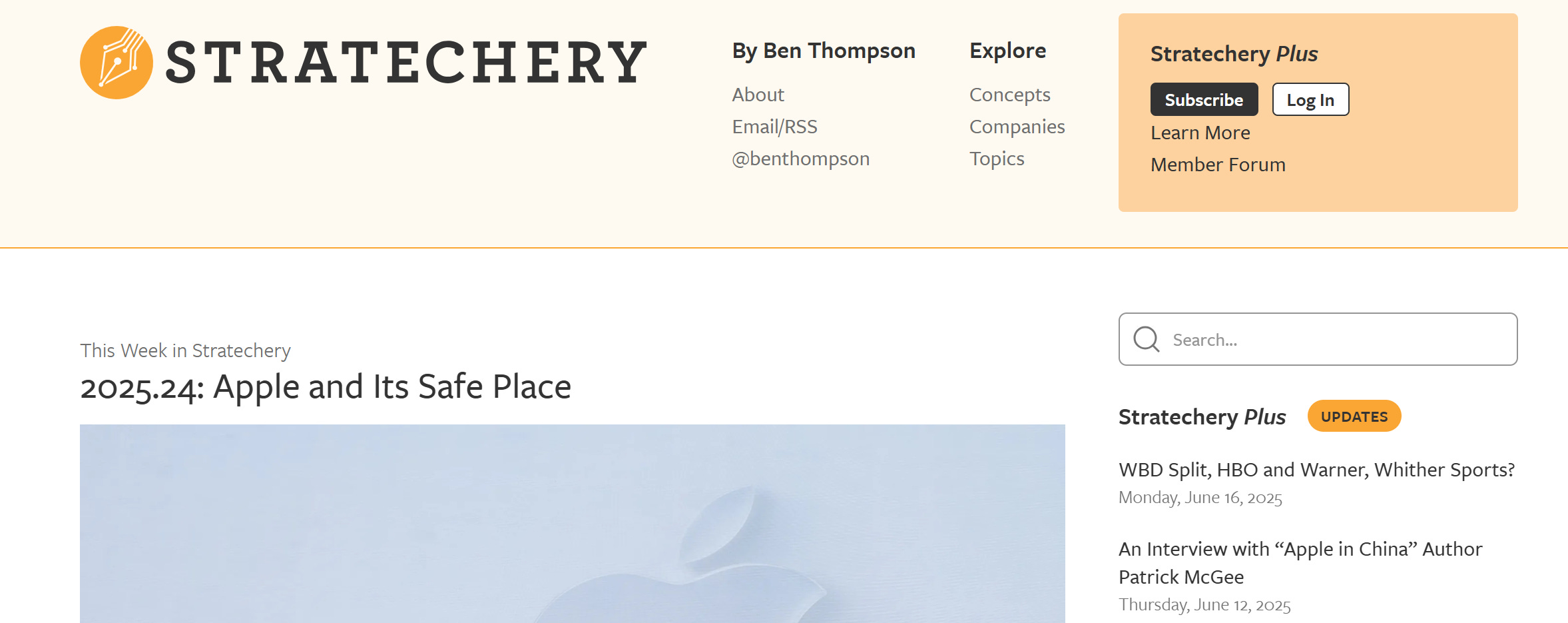 Ben 是知名的科技產業分析師,擁有超過 20 年的深度研究經驗。他的 newsletter 以戰略與商業視角切入科技議題,曾被《紐約時報》評為「解讀任何主題最有意思的資訊來源」之一。