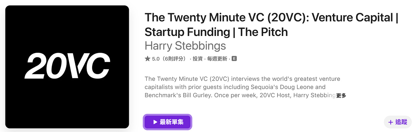 這個頻道由投資人 Harry Stebbings 主持,訪談風格直接、問題切中要害,資訊密度高。每一集都會邀請頂級創業者或風投人士,分享他們如何判斷項目、做出關鍵決策的過程。