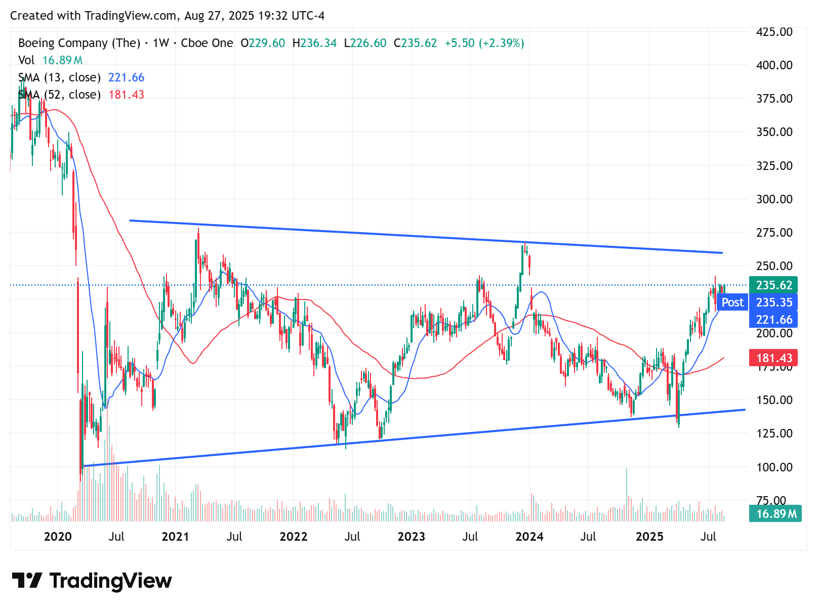 波音 (BA):韓國大韓航空與波音簽署 500 億美元大單,創公司史上最大;但管理不善,股價難回 350 美元前高。