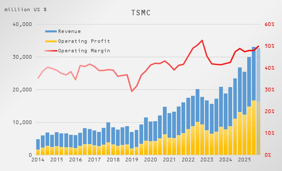 台積電(TSMC)公布歷史新高季利潤,上調全年營收預期。