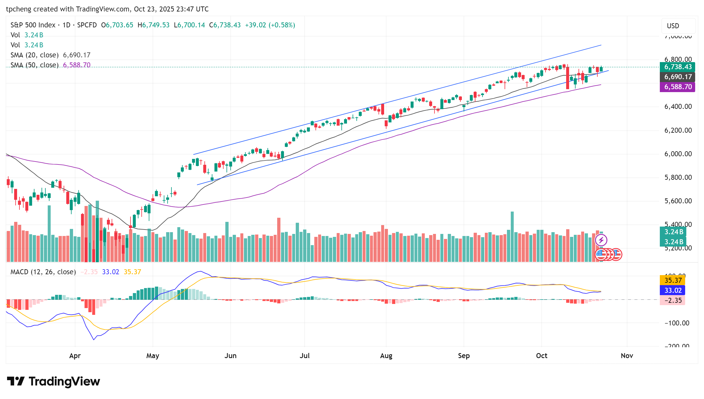 標普500仍在 6700–6750區間盤整,突破可能引發劇烈波動。