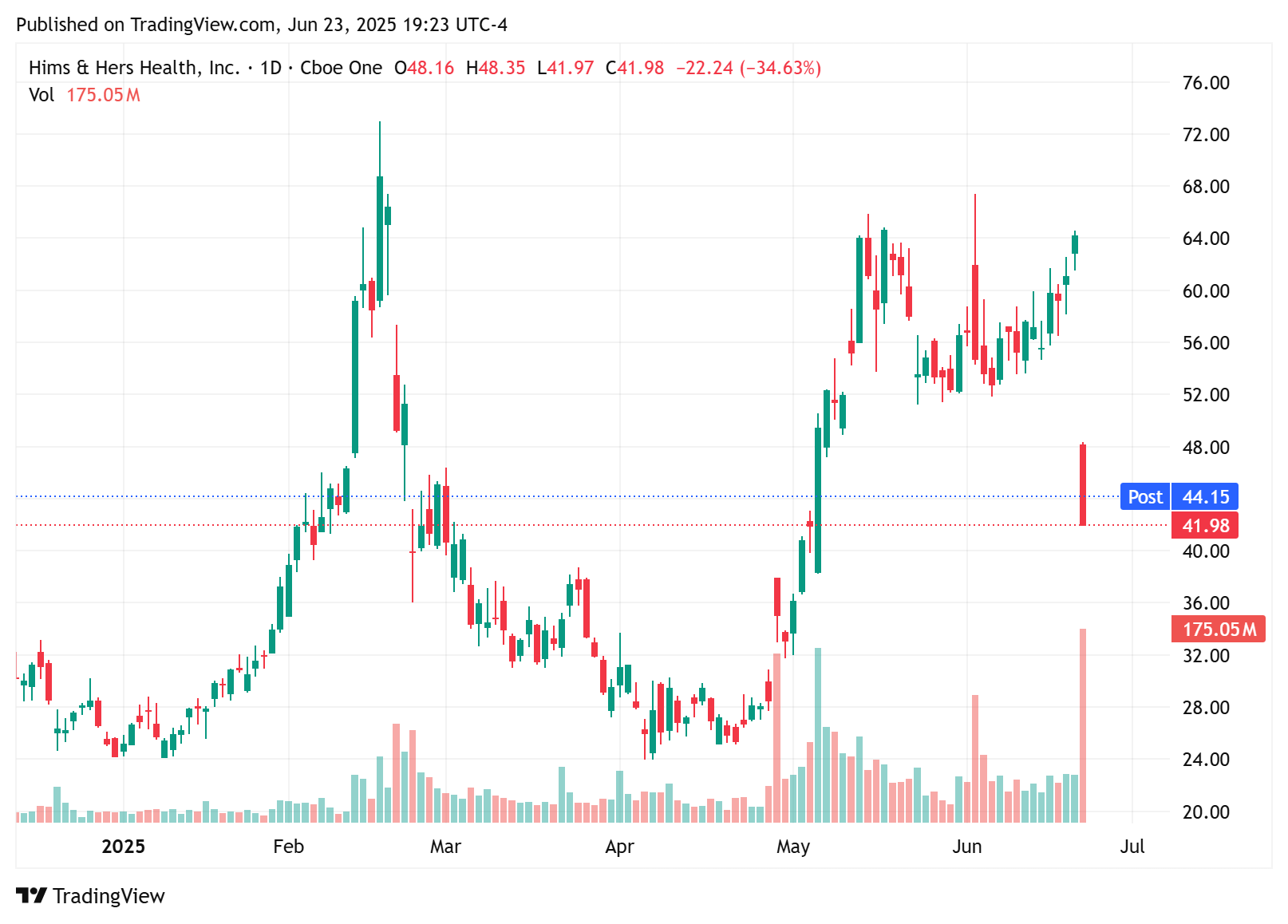 合作破裂+減肥藥臨床不佳,股價跌近6%。