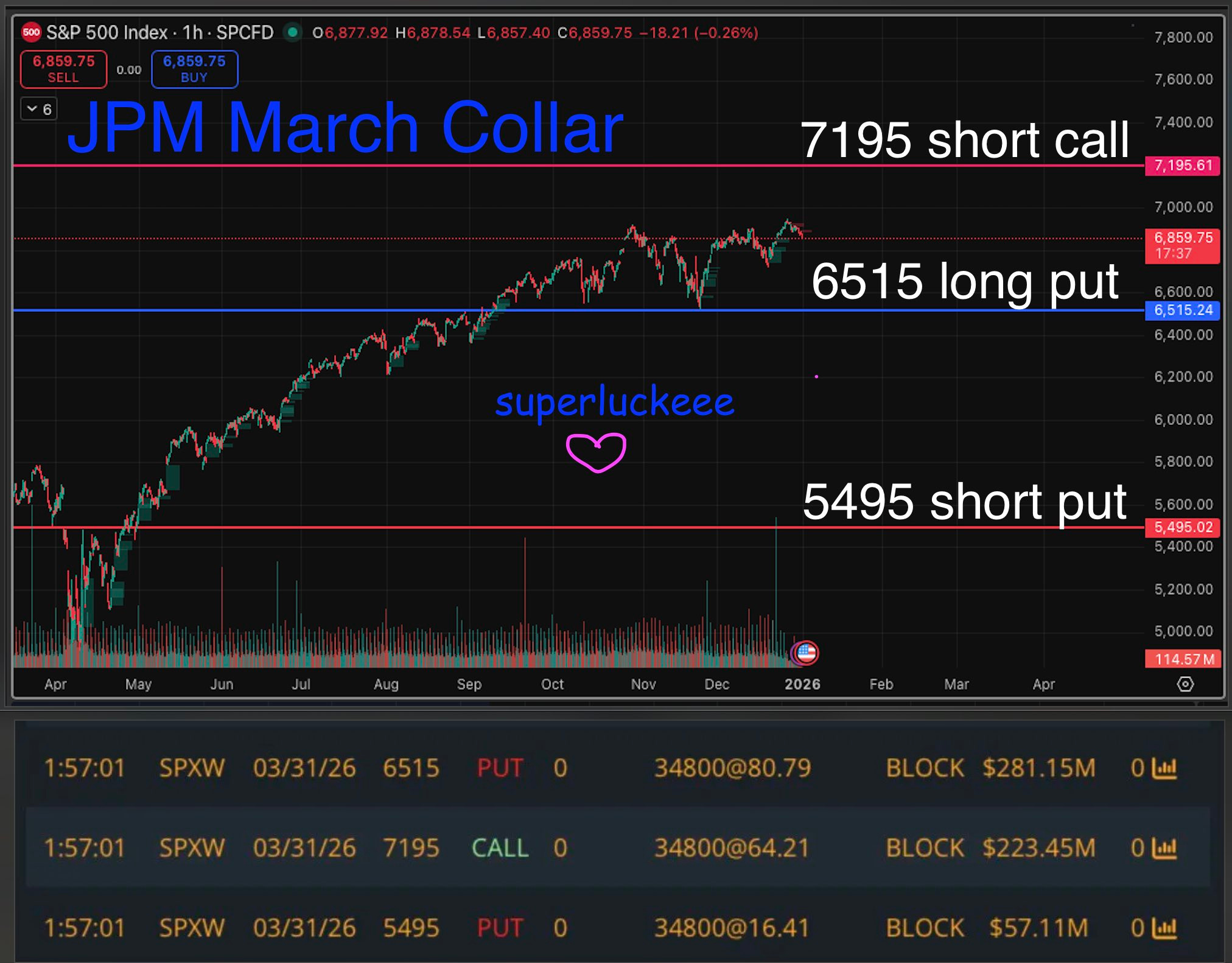 JPM 期權倉位(Collar Strategy):JPMorgan 的期權倉位為市場劃定了潛在區間。上方阻力在 7195 點(Call 期權),下方支撐在 6500 點附近(Put Spread 6,515/5,495)。這暗示若 Q1 出現回調,6500 點將是強支撐 。