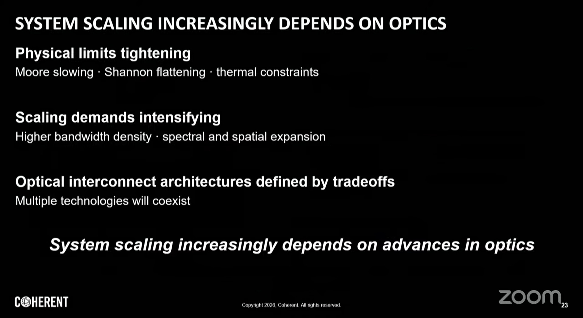 擴展需求正在加劇,物理極限同步收緊。沒有任何單一光學技術能滿足所有需求;多元解決方案分別服務不同的架構約束。光學已內嵌於算力架構之中,未來AI系統的擴展將愈來愈依賴光學領域的快速創新。
