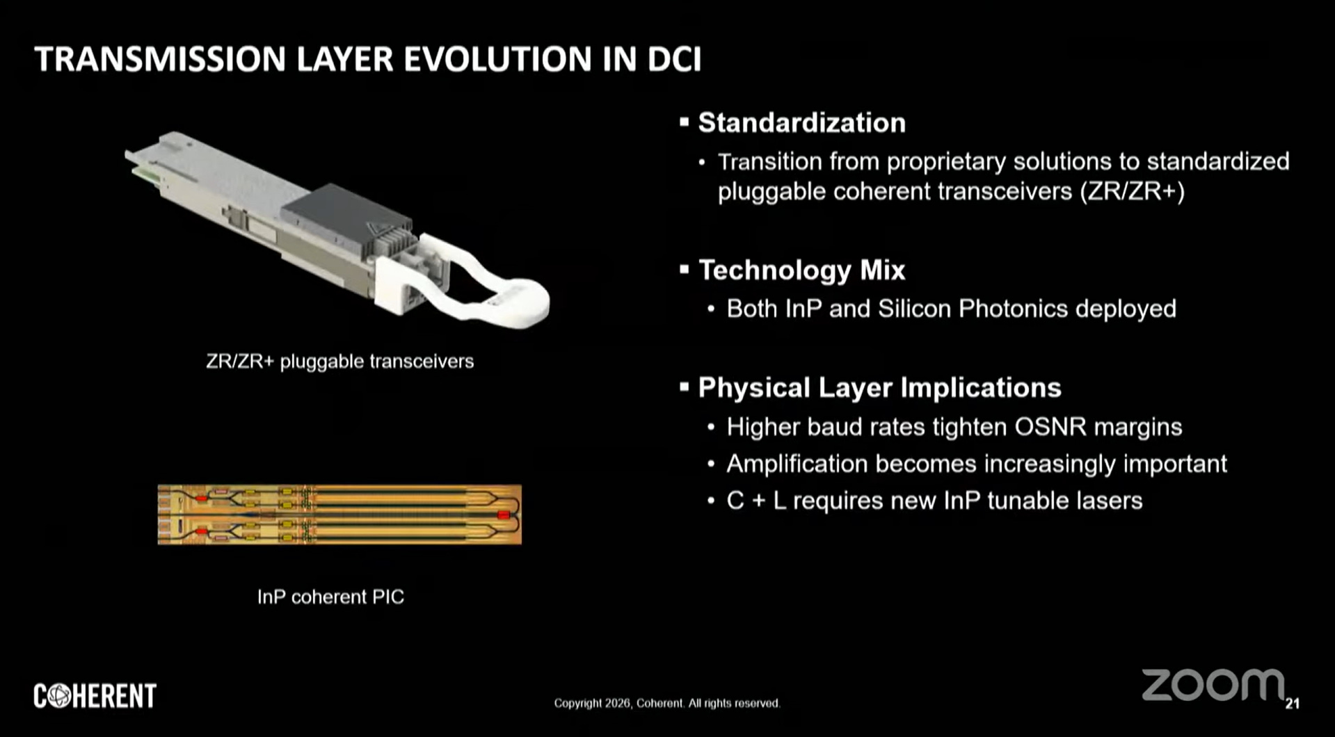 本文在忠實呈現演講核心論述的基礎上,進一步援引光通訊業界 IEEE、OIF、ITU-T 等標準組織慣用技術術語,補充必要的物理原理、系統規格與產業背景,以供研究人員、工程師及產業決策者參考。