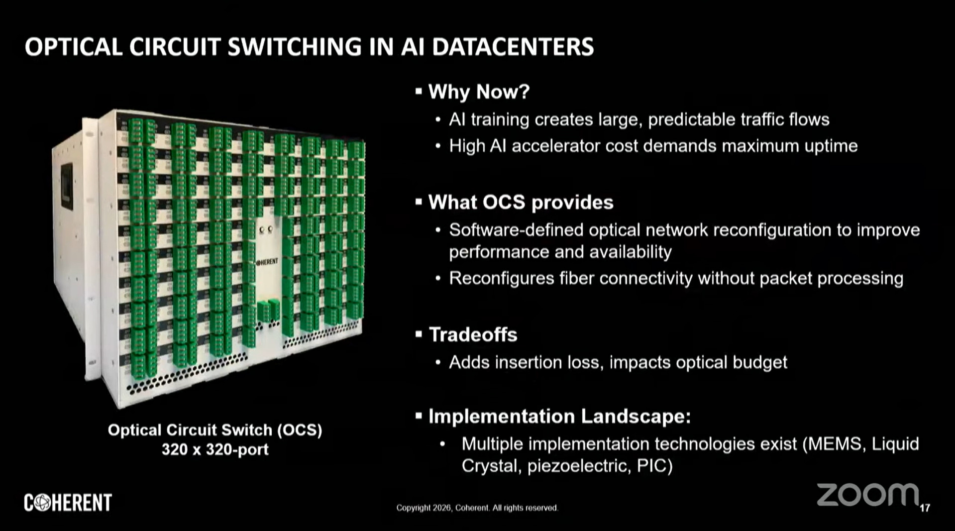 OCS作為AI工作負載的架構工具重新受到重視,其核心價值在於軟體定義拓撲重組(Software-Defined Topology Reconfiguration):
