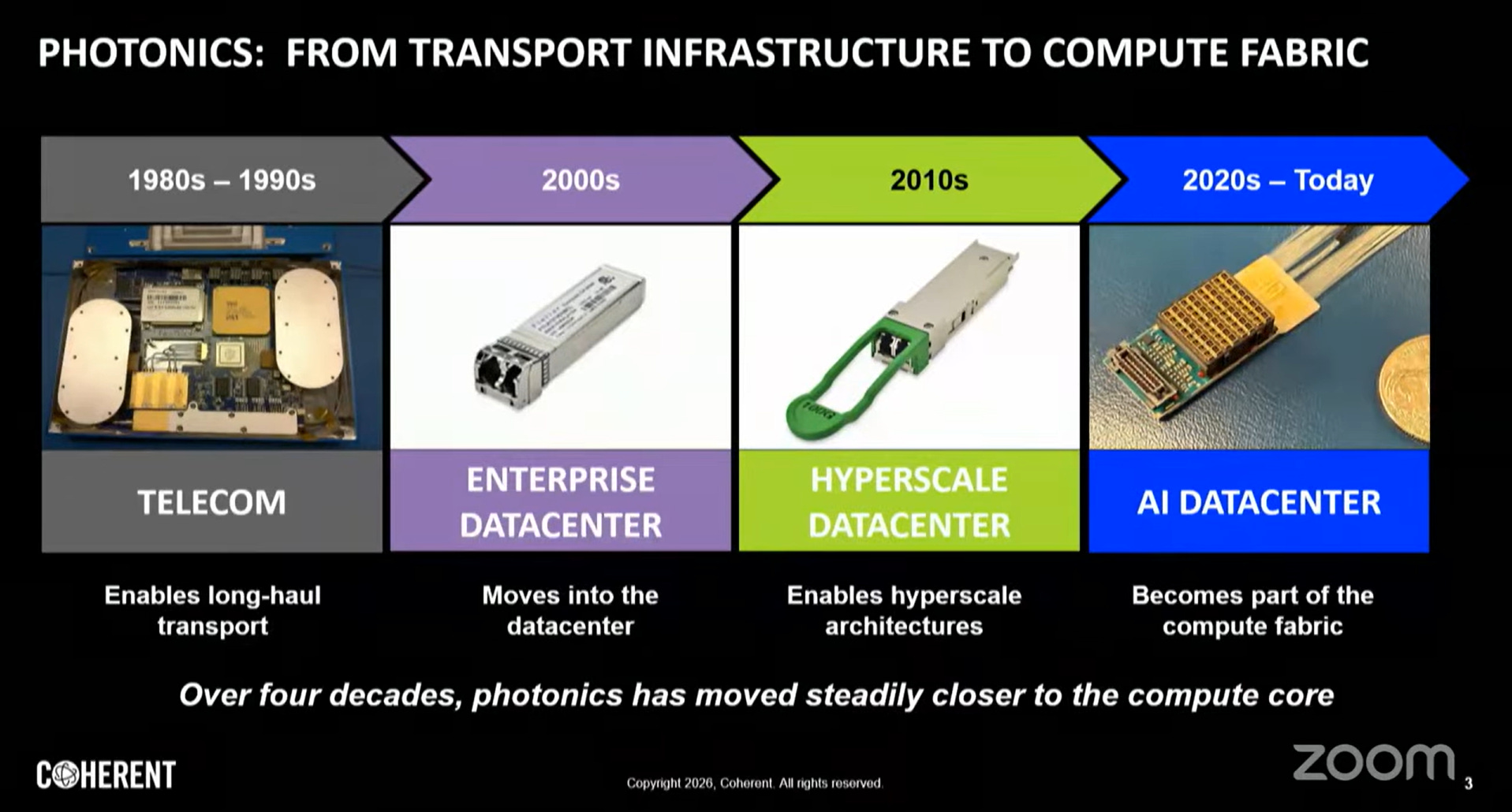 回顧近三十年的OFC歷程,Julie Sheridan Eng 將光子學發展劃分為四個世代: