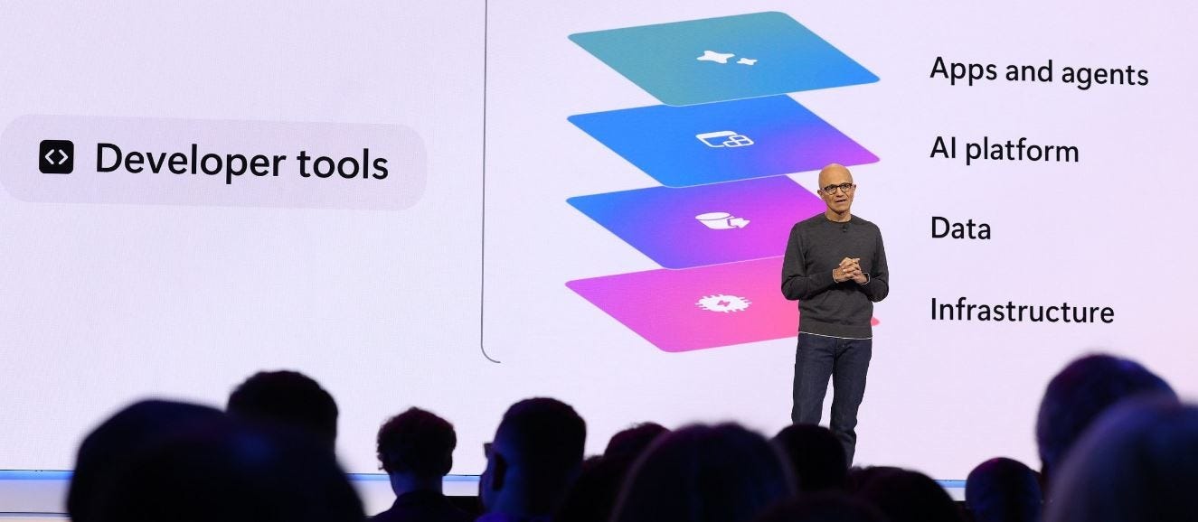 在Build 2025大會上,微軟CEO Satya Nadella用1991年的Win32 API、1996年的Web堆疊以及2008年的智慧型手機,來比擬AI的發展節點,強調AI如今仍處於「B端應用的基礎打樁期」。微軟的重心,從來就不只是炫技式的C端產品,而是如何為開發者和企業提供強大的基礎設施,支撐AI在更複雜場景下的實際應用。