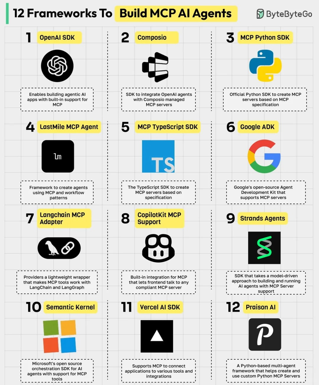 MCP (Model Context Protocol) AI Agent。它讓AI不再只是一個聊天機器人,而是真正能夠「動手」去完成任務、調用工具和執行流程。以下是12個主流的MCP AI Agent開發框架,每個都有其獨特的定位和優勢,幫助你快速找到適合自己的工具。
