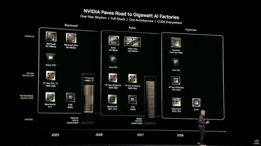 Nvidia 已正式採用一年一代的升級節奏,這意味著每年都會出現性能更高、能效更強的新 GPU。這一速度早已遠超摩爾定律的節奏。正如黃仁勳所說,從 Hopper 到 Blackwell,token 成本下降了 10 至 20 倍;相比之下,摩爾定律帶來的效能提升僅約 20%。這代表 GPU 的經濟壽命與攤銷週期都必須重新評估。'