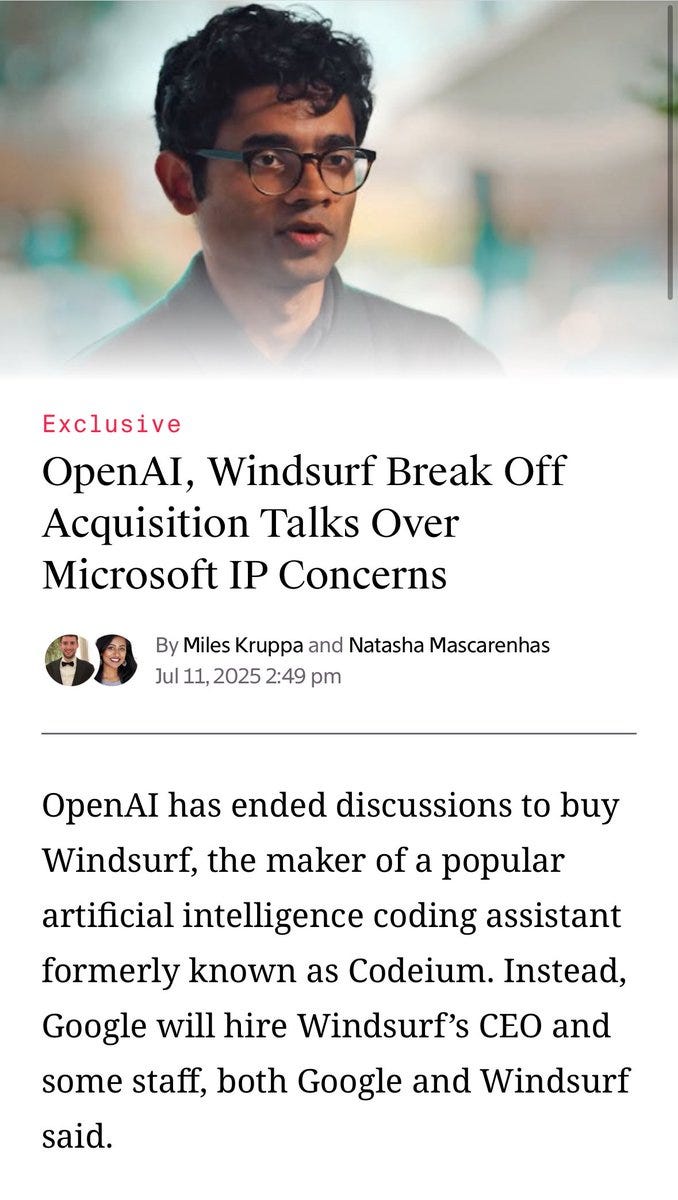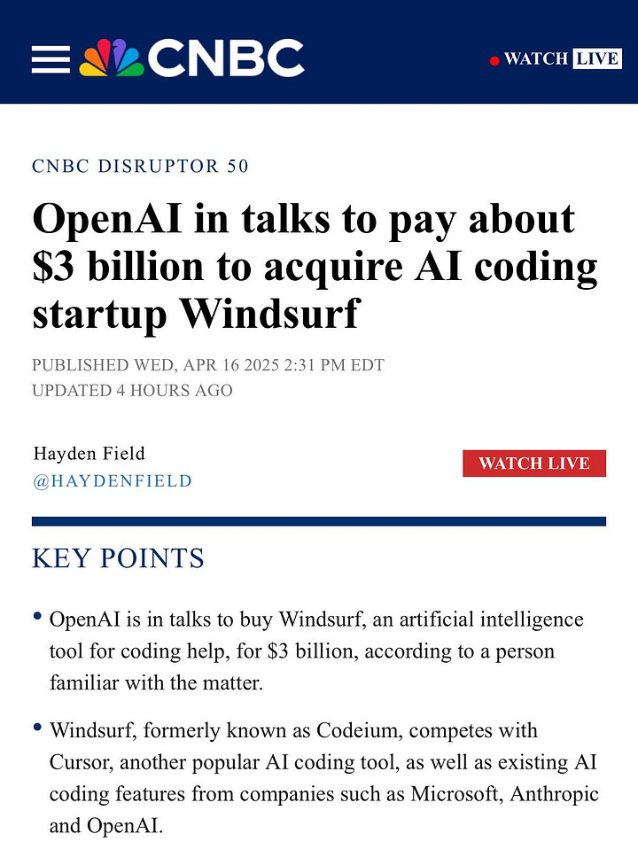 從 Windsurf 崩解看大廠如何解構初創公司(在介紹 Cursor 之前,我原本已經寫完介紹 Windsurf 文章,後因為傳出被Open AI收購而未發稿)