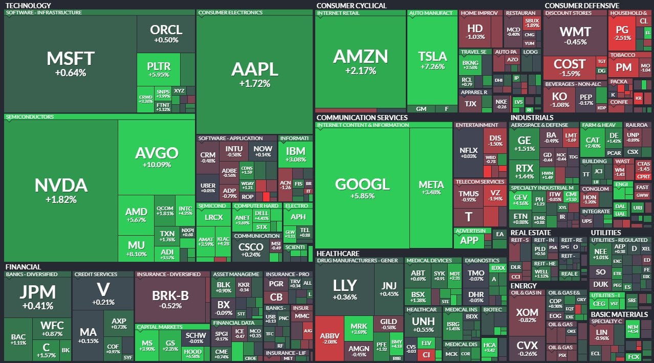 1️⃣ AI 股在上週暴跌後強力反彈,Google 領軍、Broadcom / Micron 大漲