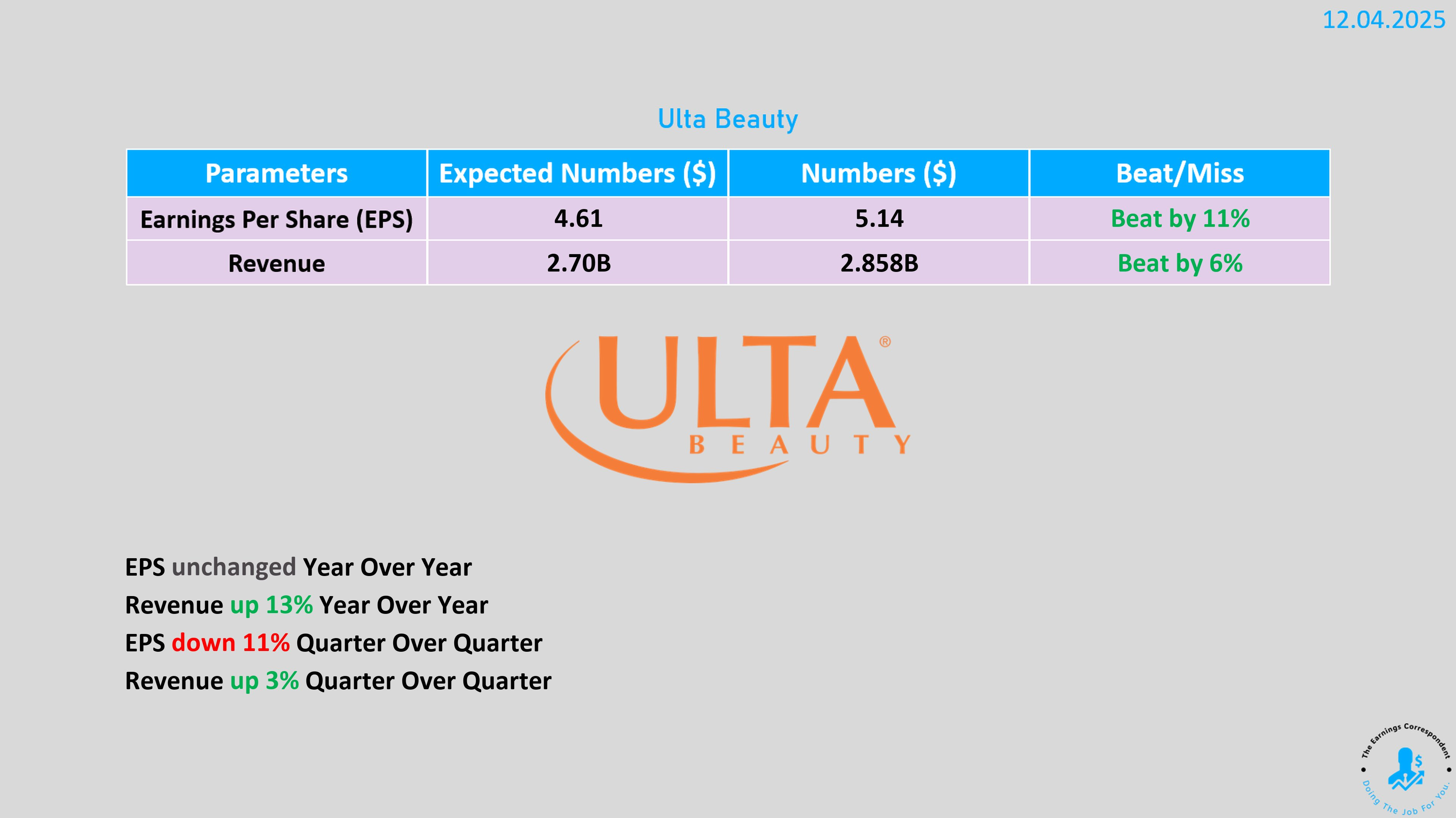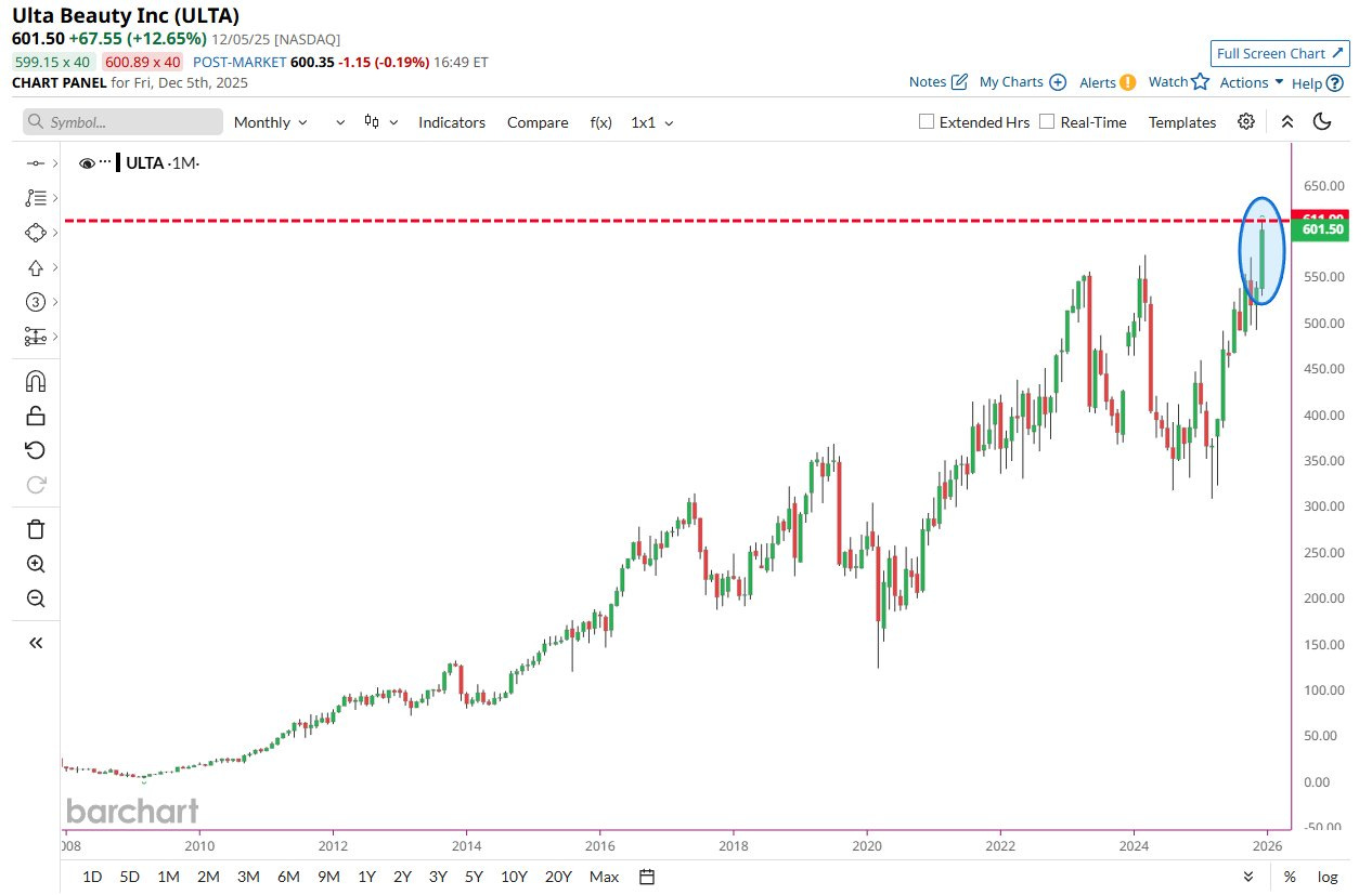 Ulta Beauty(零售消費):Q3 業績優於預期且上調財測,股價創歷史新高 。顯示即便在經濟不確定下,消費者仍願意為「悅己」產品(香水、彩妝)買單 。