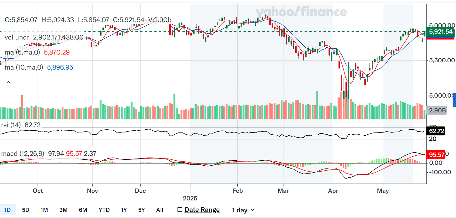 ✅ 標普 500 收盤站上 5 日與 10 日均線,市場多頭強勢。