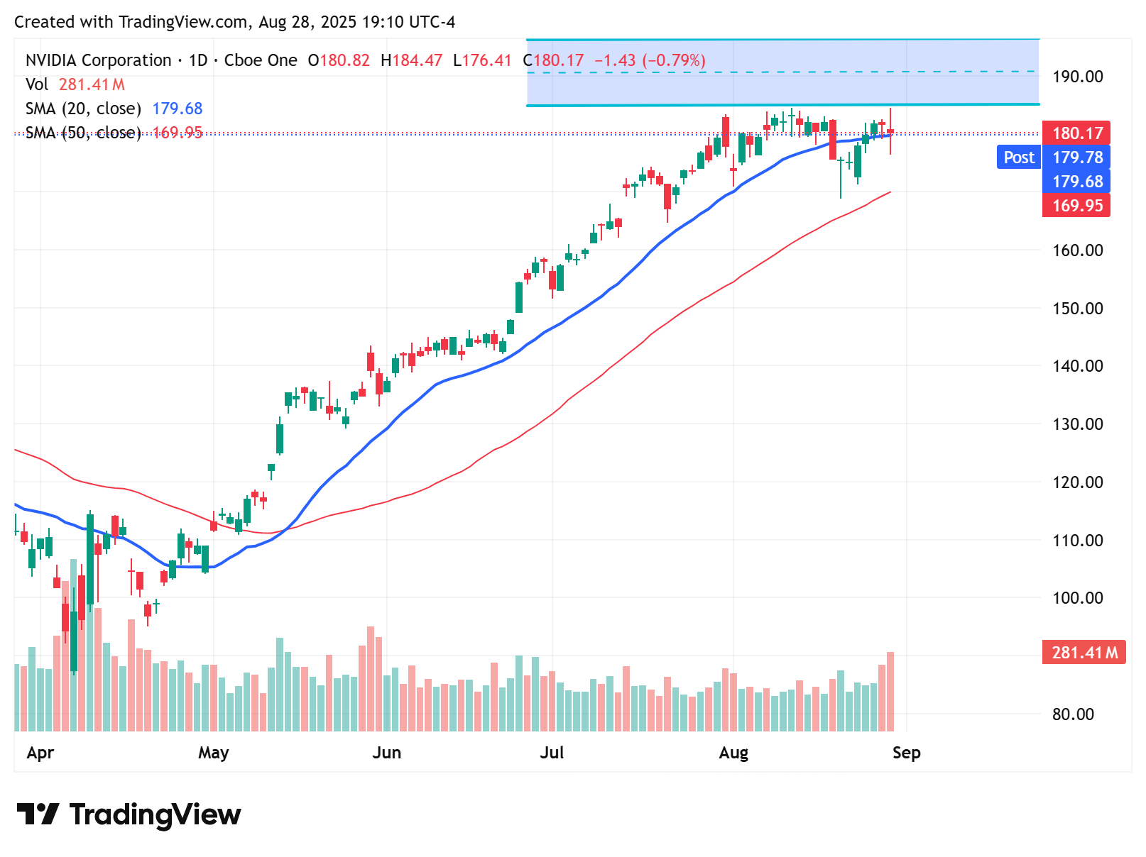 英偉達(NVDA):財報後震盪收十字星,買CALL買PUT者普遍雙殺;受回購計畫支撐,預計股價持續橫盤。下週有機會朝 185 - 200 區間挺進,但最好的情況也只是橫盤整理而已。除非中國市場迎來非預期性利多(例如允許 Blackwell 出口中國)