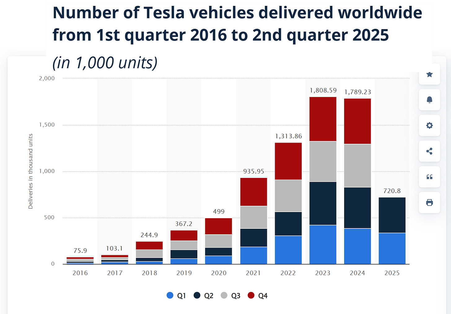車輛交付量 (Deliveries): 每季度的生產與銷售數字。