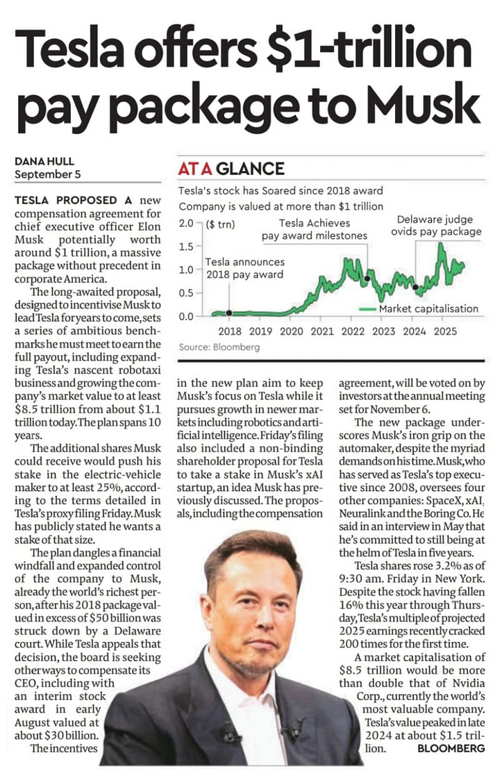 綜合而言,雖然以傳統財務指標衡量,特斯拉當前的股價與市值顯得「高不可攀」,但若將視野拉長,並納入其顛覆性創新業務的潛在價值,這一估值並非全然缺乏依據。在 全自動駕駛(FSD)、無人計程車(RoboTaxi)、人形機器人(Optimus)、AI 超算(Dojo) 以及 能源生態 等領域,特斯拉皆握有先發優勢並投入巨額資源。若其中任何一項成功落地,都可能創造出相當於一家大型企業的市值。正如 Ark Invest 所提出的 2,000 美元估值模型,對應的是「相當於當前美股前 11–20 大公司總市值」的規模。馬斯克甚至斷言,未來特斯拉的主要價值將來自這些尚未完全實現的業務。