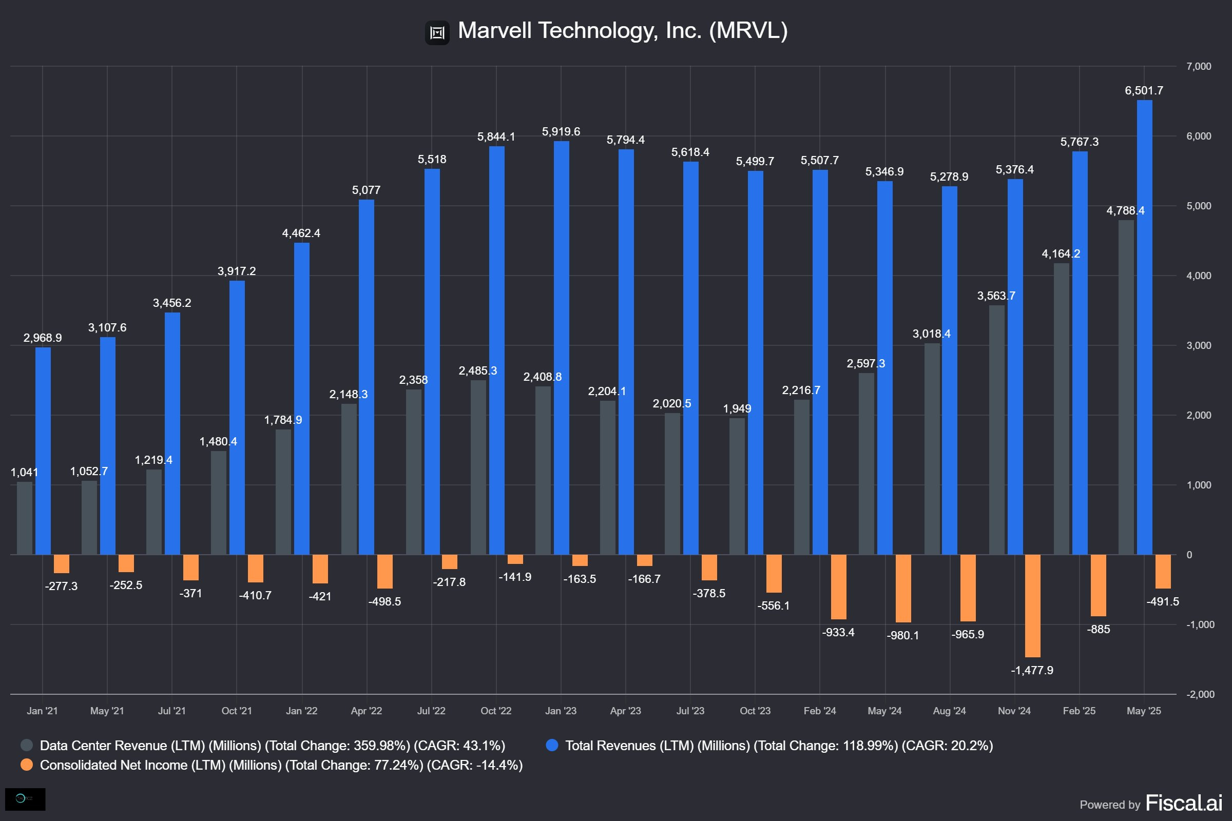 財報與展望失望:MRVL 最新季度財報與指引不如市場預期,引發對 AI 投資潮中前景的擔憂。