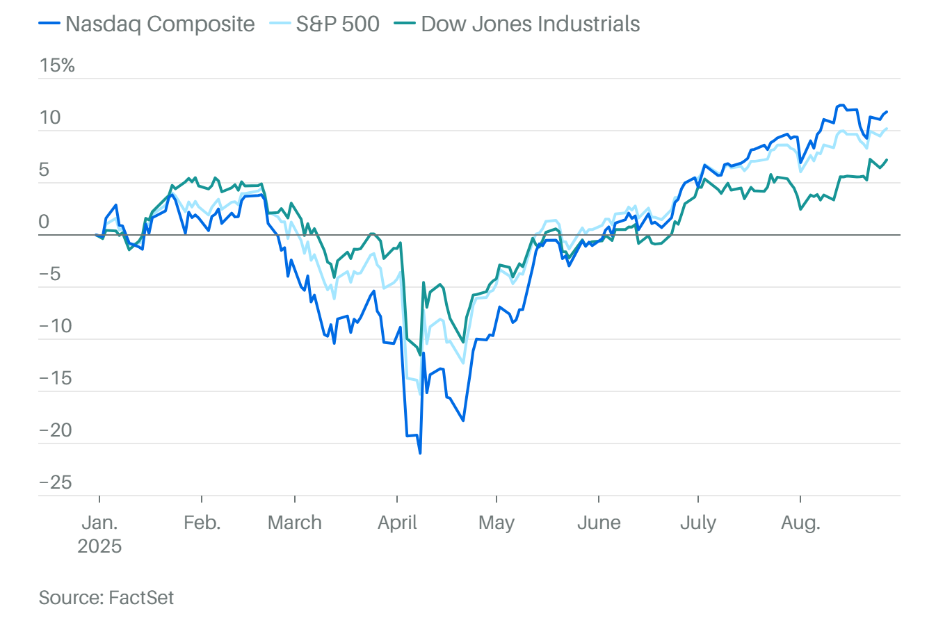 道瓊表現最好,本月漲約 +3.2%