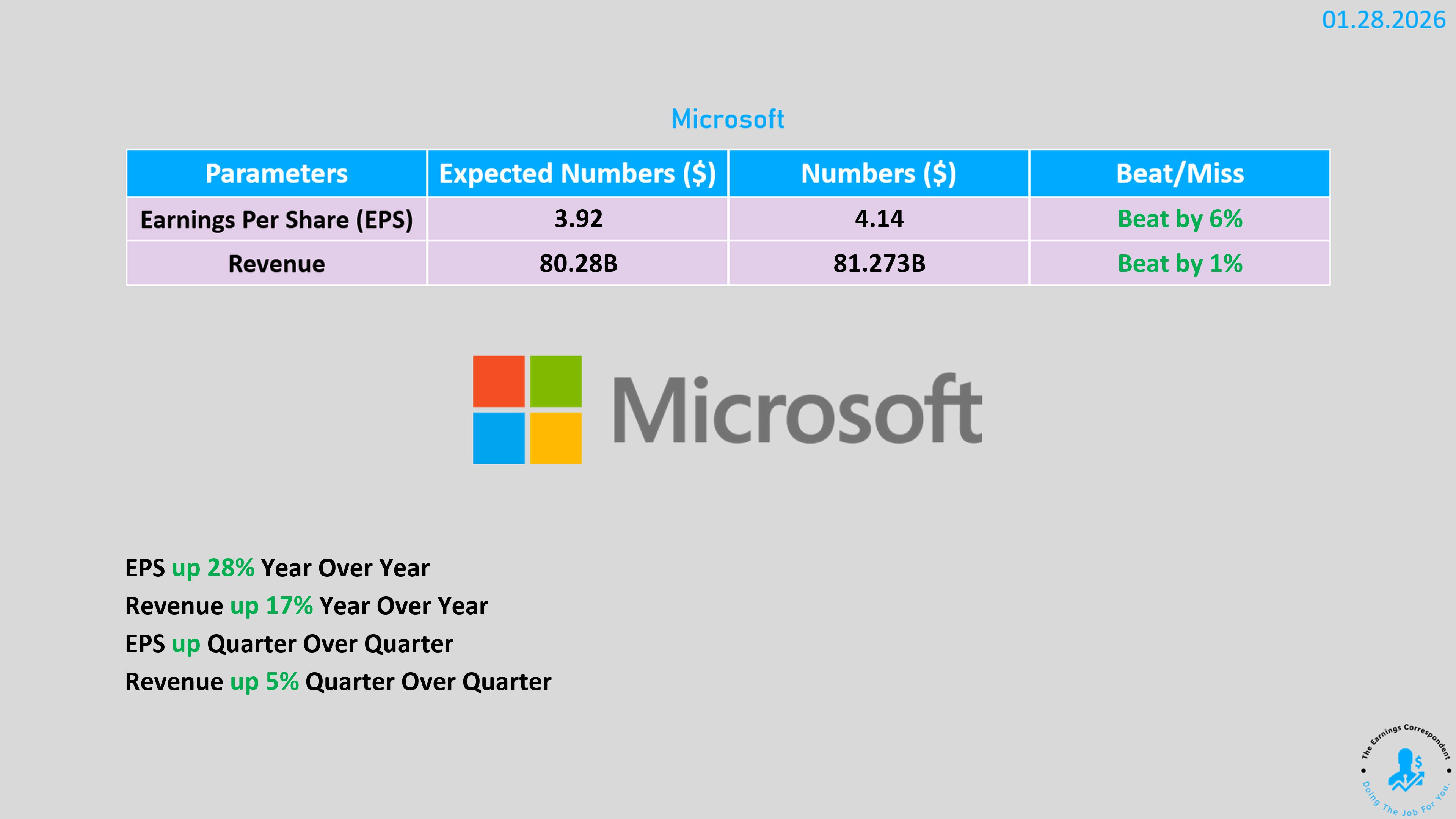 財報結果:營收 197億美元 (年增 12%),調整後 EPS $4.52,均超越預期。