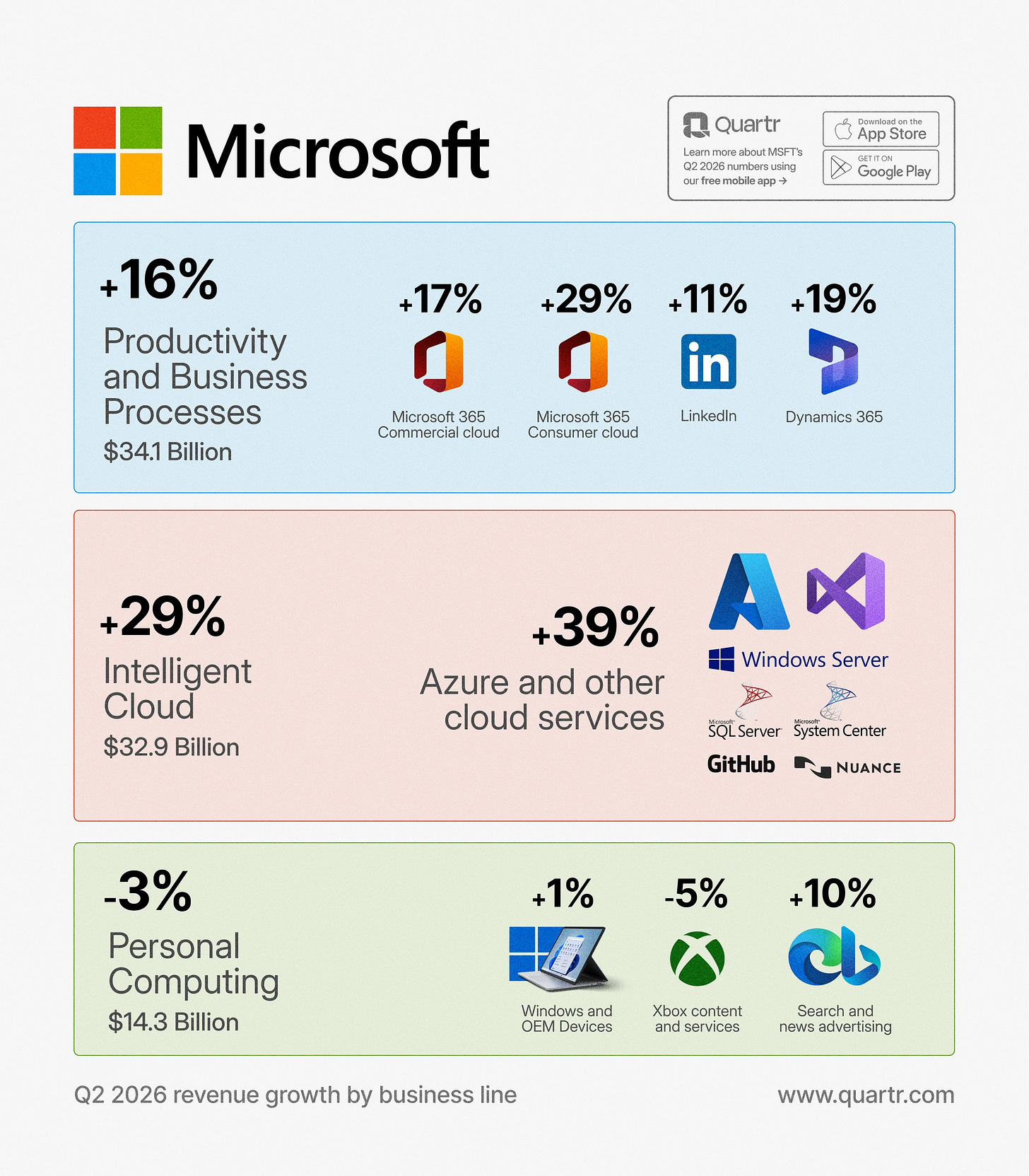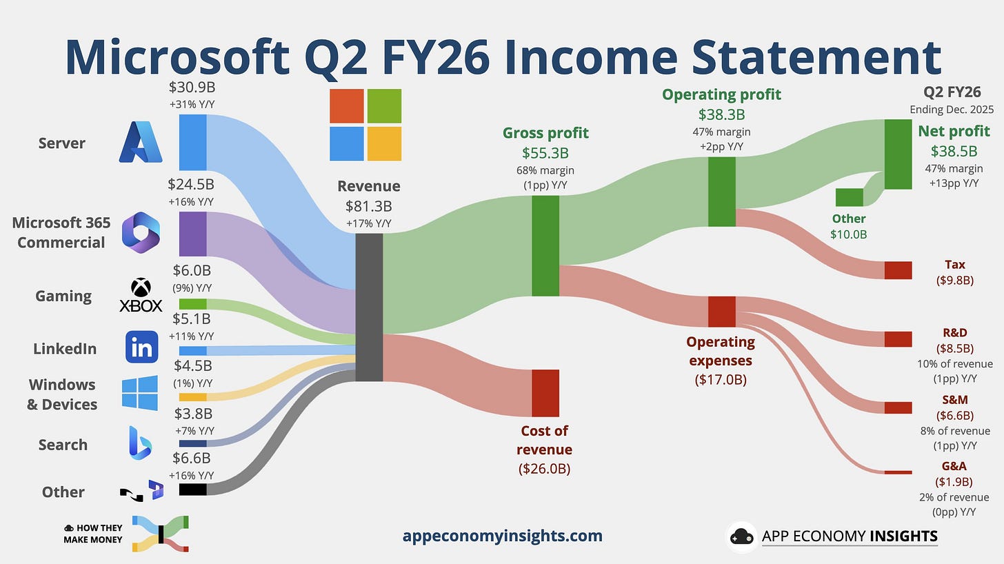 Azure 雲端:營收 329 億美元,高於預期,但市場擔憂其增長放緩。