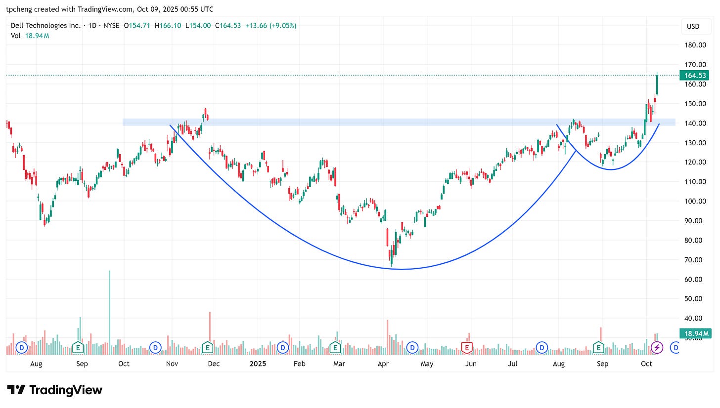 AMD 領漲半導體成分股,而 DELL 因強調 AI 帶動的增長潛力、上調獲利預期,股價持續強勢。