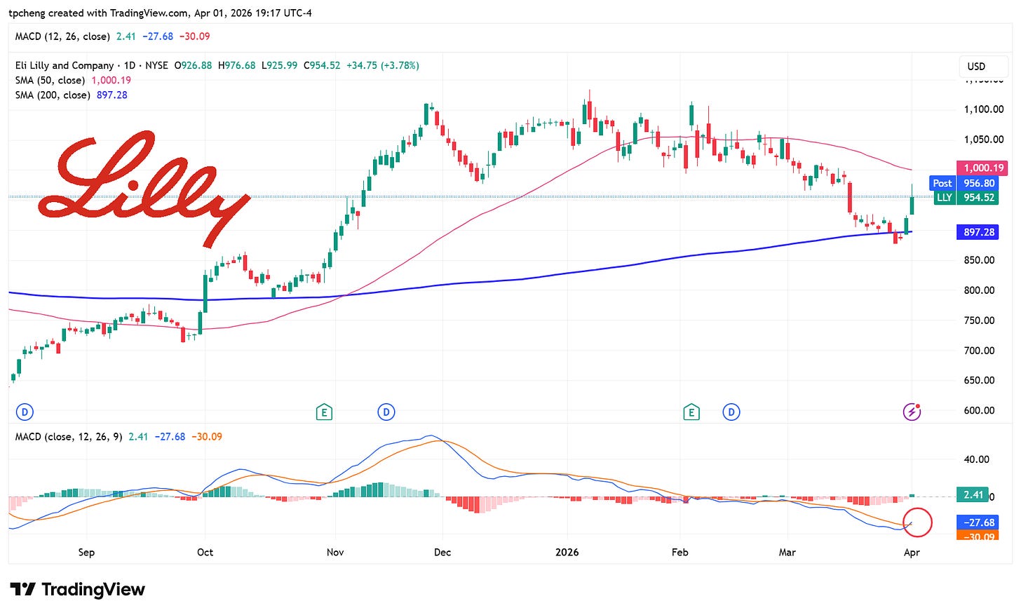 Eli Lilly(LLY)生技突破: 禮來公司今日股價上漲 3.8%,主因是其口服肥胖症藥物「Foundayo」獲得 FDA 批准 。該藥物相較於對手 Novo Nordisk 的口服 Wegovy 具有顯著優勢——服用時無須空腹,亦無飲水限制 。目前禮來市值約 8,690 億美元,遠超 Novo 的 1,582 億美元 。