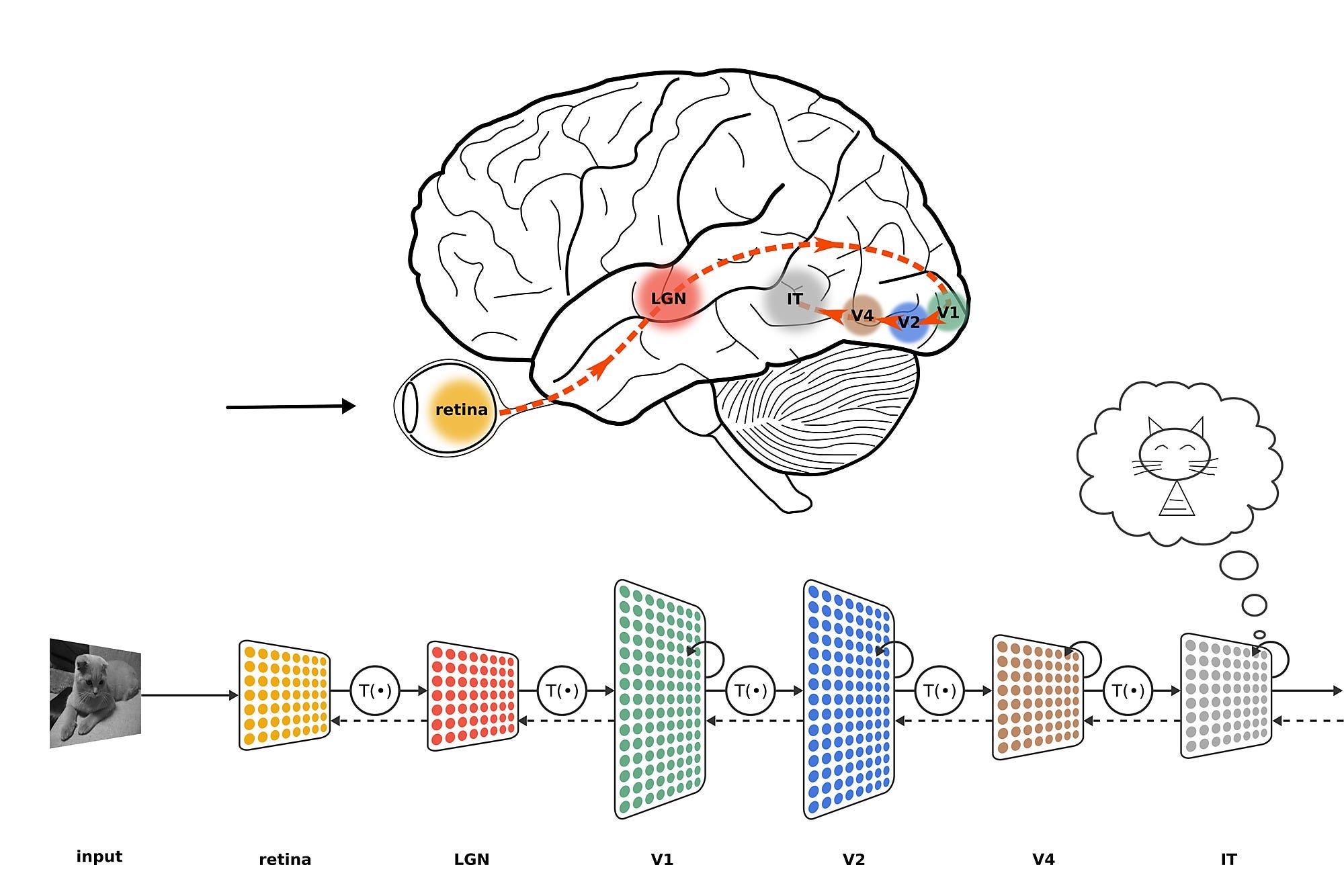 但當研究深入到更高級的視覺區域2,例如負責物體識別的顳下皮質(IT),情況就變得複雜了。這些區域的神經活動,無法單靠隨機權重來模擬,必須透過大量學習與訓練,才能真正達到類似的辨識能力。換句話說,大腦高階視覺區域的運作,遠比初級視覺區更依賴學習與經驗。