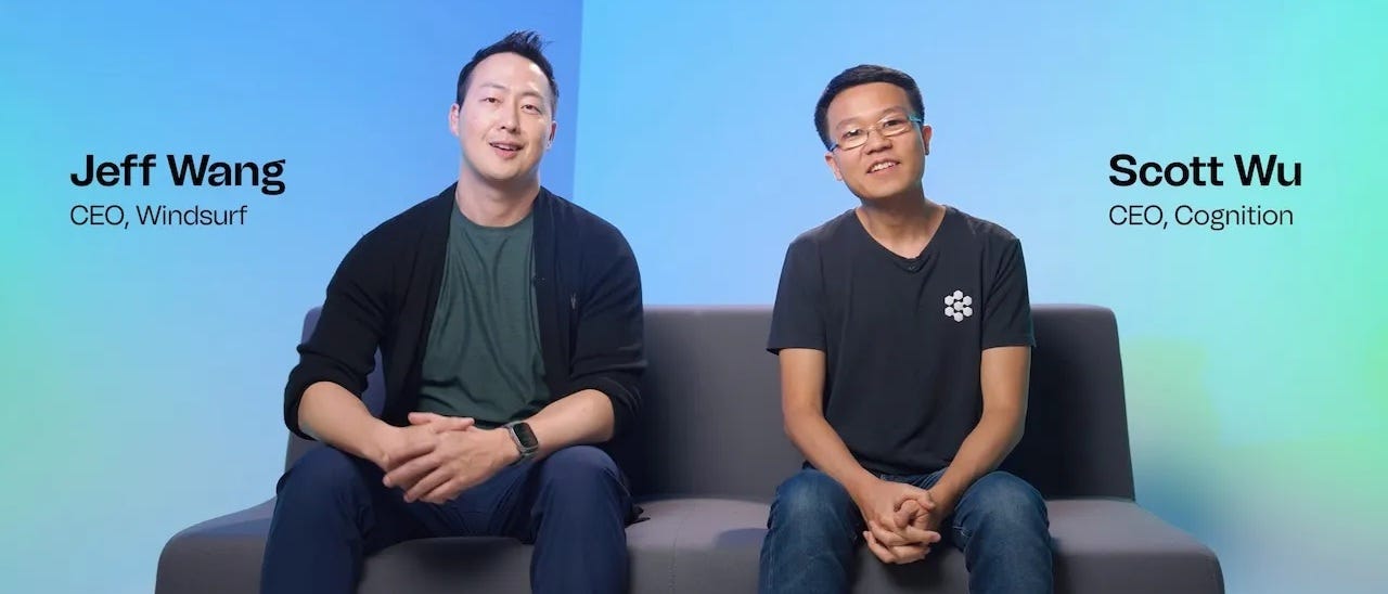在 Google 挖走 Windsurf 創辦人與技術骨幹後,Windsurf 變成了一家失去主導力、員工士氣低落的公司。但正是這樣的真空期,讓 Cognition 能在短短 72 小時內全盤接手——不僅獲得剩餘約 250 位工程師與完整產品組,還把原本與 Devin 類似的 AI IDE 打包納入,實現產品層的閉環整合。