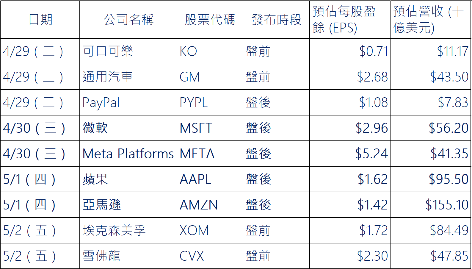 重要公司財報發布