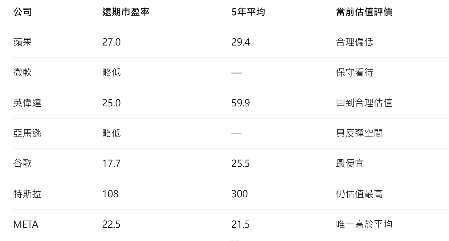 七巨頭估值是否出現投資機會。