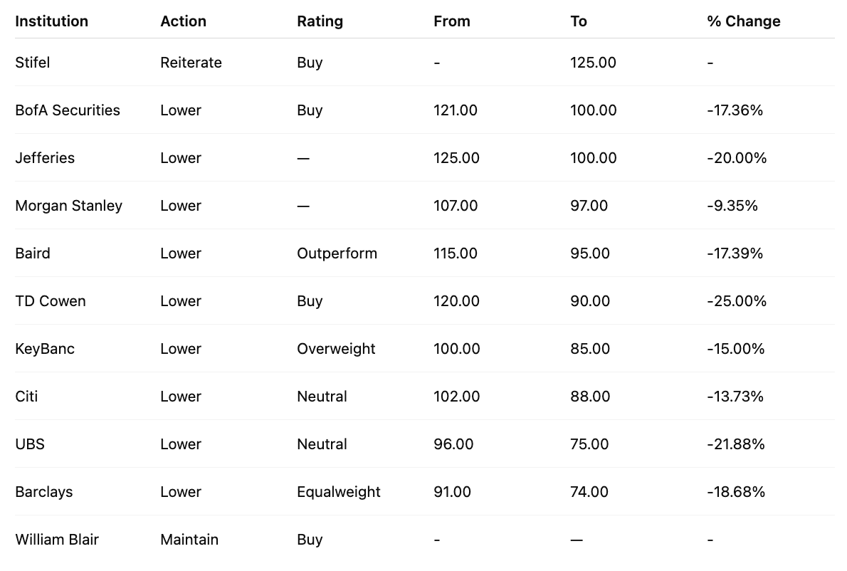 Q2 營收、同店銷售均不及預期,全年展望下調,股價跌逾 24%。