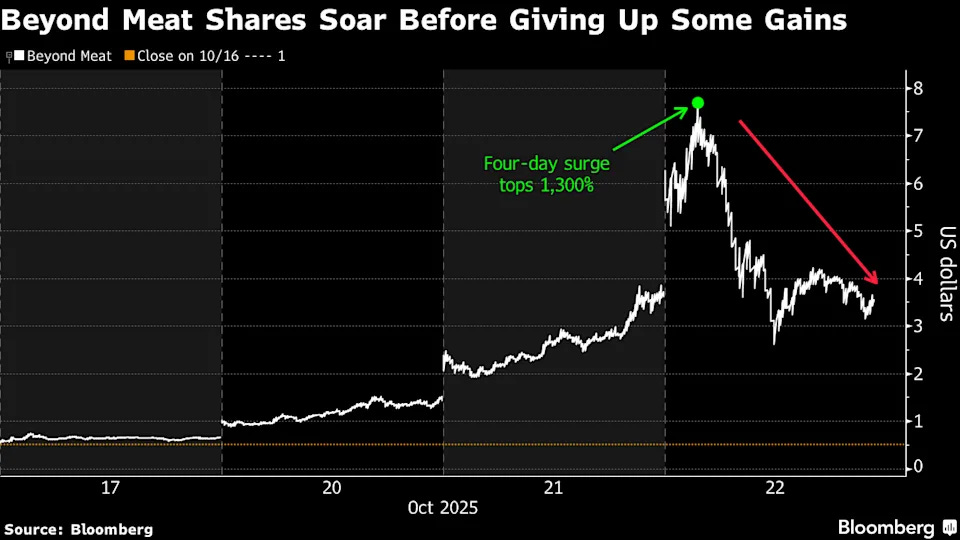 Beyond Meat:三天內暴漲 700%,週漲幅超過 1000%,之後大幅回檔。