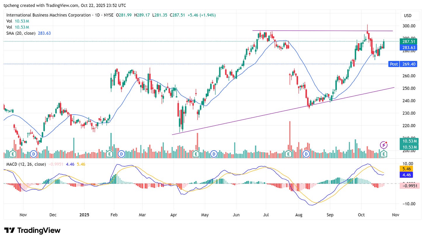 CEO Arvind Krishna 上調全年財測。惟軟體部門增速放緩,股價盤後跌近 5%。