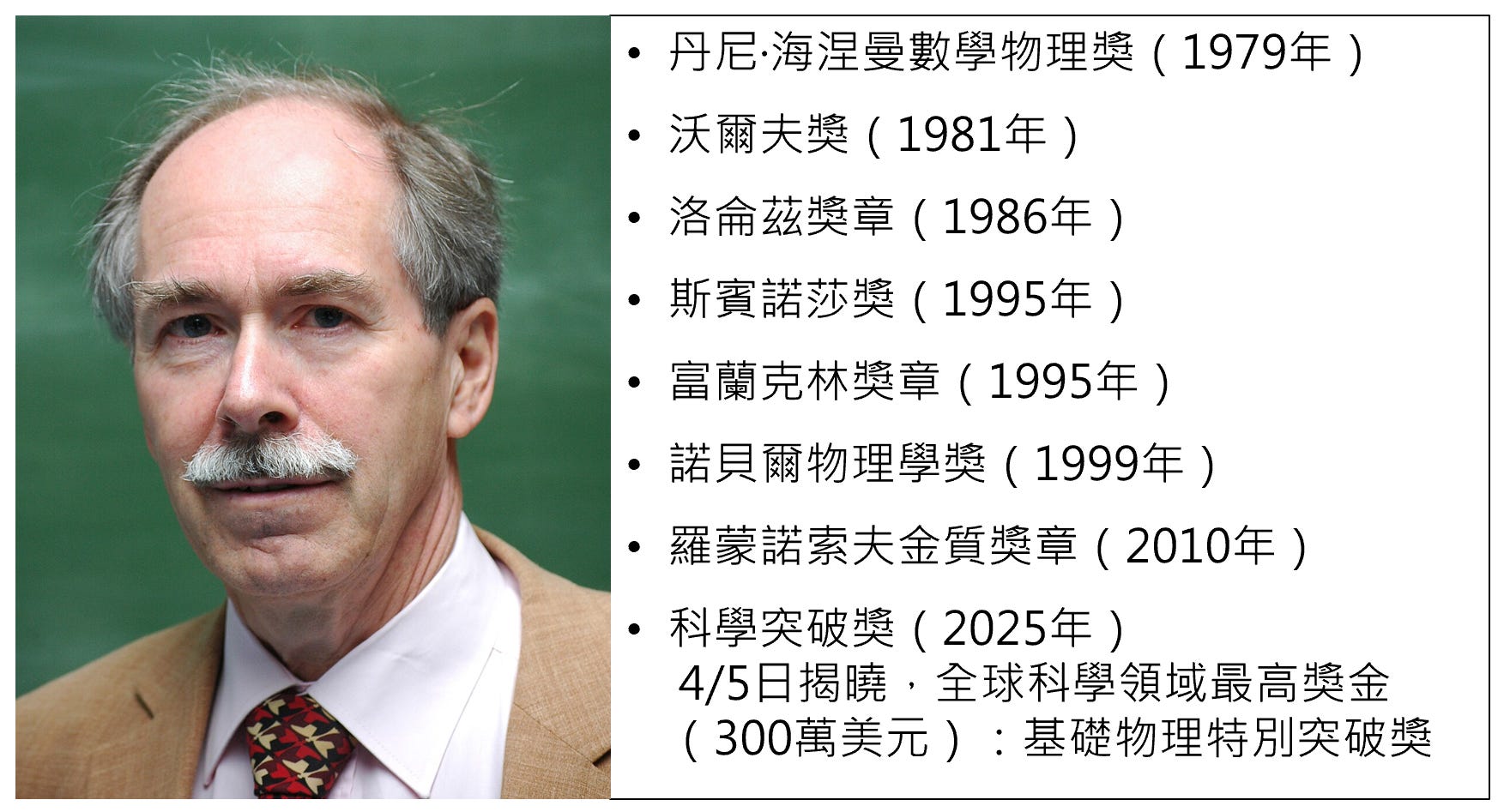 荷蘭學者 Gerard ’t Hooft 是以數學嚴謹、物理直覺、思想非凡著稱,不僅在 1999 年與導師 Martinus Veltman 共同獲得諾貝爾物理獎,更因其畢生對基礎物理的貢獻,於 2024 年獲頒價值三百萬美元的「基礎物理特別突破獎」。然而,相較於獎項本身,更引人注目的是 ’t Hooft 對當今主流物理學,尤其是量子力學的根本質疑。