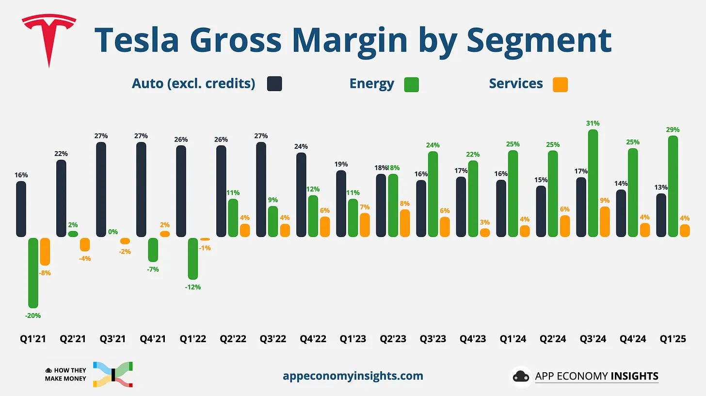 最令人憂心的是:若扣除監管碳權收入,特斯拉恐已陷入虧損。這些來自歐洲與加州的「排放額度交易」雖為純利,但非可持續業務,無法彌補核心業務惡化的長期問題。