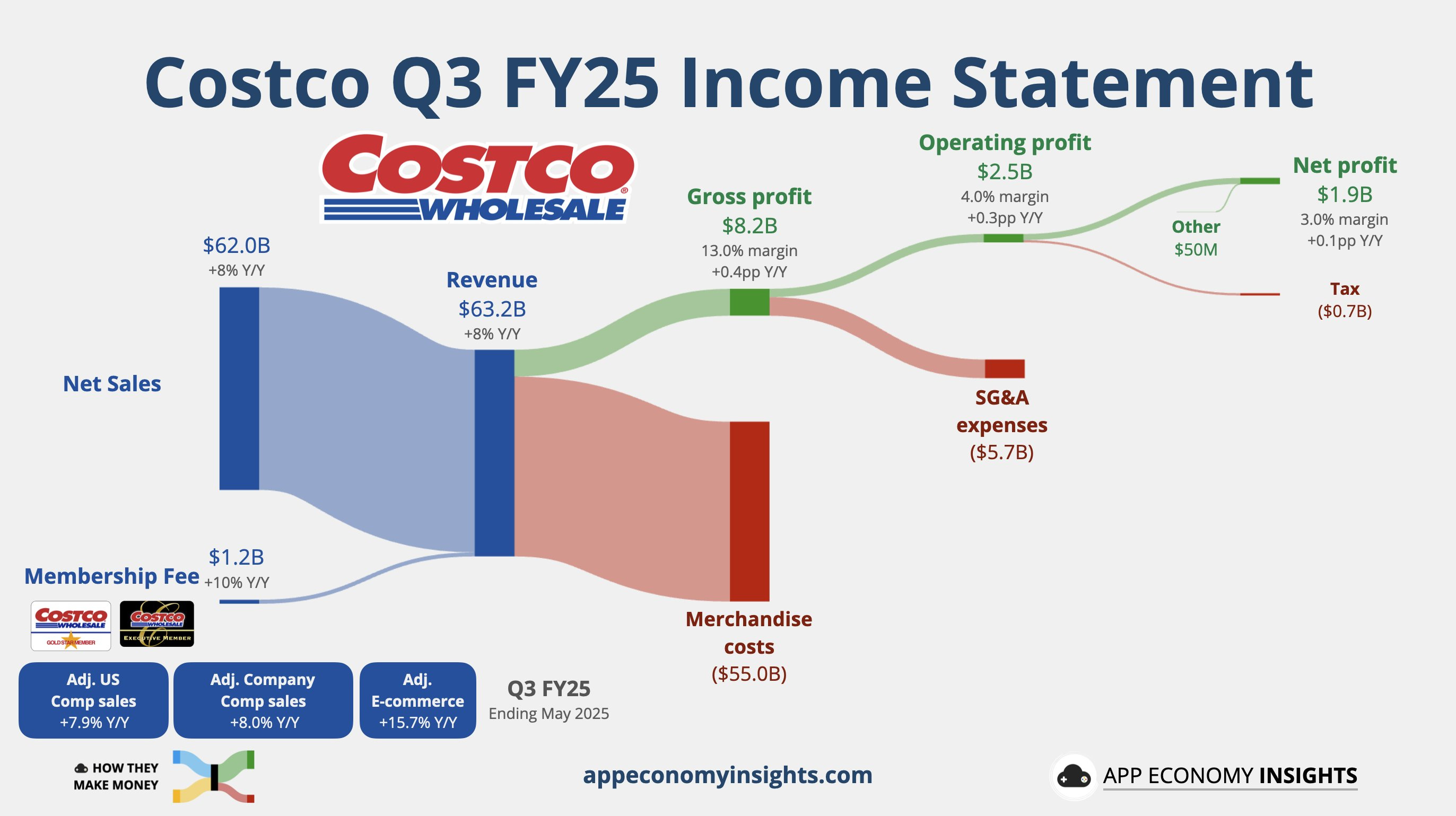 Costco 公布季度財報,營收與獲利皆優於預期,銷售成長 8%。
