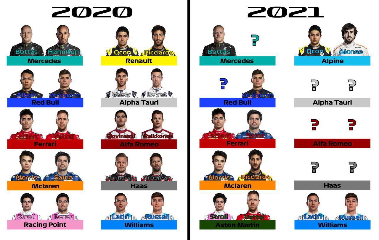 代替 Sainz 空缺,與 Lando Norris 組成新雙人組合。這代表Renault(2021改名Alpine)需要補齊缺口。