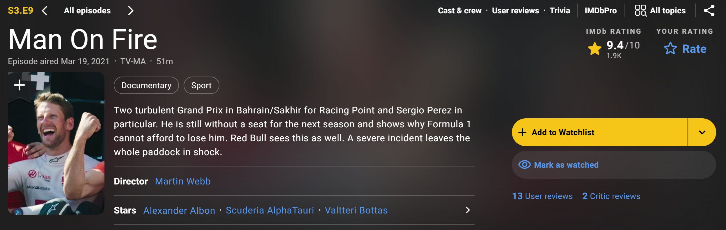 第三季Man on Fire,IMDb 9.4/10,宛如電影情節般的真實賽場故事